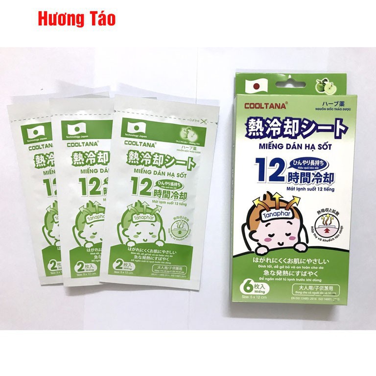 ạt tiêu chuẩn: ISO 13485: 2016/ Được Bộ Y tế cấp ĐKLH: 32/2016/BTY-TB-CT 🍃 Thành phần Aluminium glycinat, Glycerin, Natri polyacrylate, Menthol, Eucalytol, nước… 🍃 Công dụng Giúp hạ nhiệt, hạ sốt, giảm đau, đau đầu, đau cơ bắp, say nắng. Ngăn ngừa các cơn co giật. Miếng dán dùng được cho trẻ sơ sinh. 🍃 Cách sử dụng Gỡ tấm film ra khỏi miếng dán, dán mặt dính lên vùng da khô sạch nơi muốn làm mát hoặc giảm đau như: trán, nách, bẹn, vai, lưng, cơ bắp. Có thể cắt nhỏ miếng dán lạnh theo kích thước cần dùng. Muốn tăng công dụng của miếng dán, có thể dán nhiều miếng ở nhiều vị trí khác nhau cùng lúc. Để tăng hiệu quả làm mát của miếng dán lạnh, cho nguyên túi chưa mở vào ngăn mát của tủ lạnh trước khi dùng. Miếng dán lạnh có hiệu quả làm mát liên tục trong 12 tiếng. Lưu ý: Mỗi miếng dán chỉ sử dụng một lần. Khi mở túi, miếng dán phải được dùng ngay để đạt hiệu quả tốt nhất. Không dán miếng dán lên mắt, niêm mạc, vùng da bị tổn thương. Khi sử dụng cho trẻ nhỏ phải có sự giám sát của người lớn. Có 3 mùi hương: Táo, Bạc hà, Dâu tây cho mẹ lựa chọn Sản phẩm sử dụng được cho cả trẻ em (bao gồm cả trẻ sơ sinh) và người lớn. 🍃 Bảo quản Nơi khô ráo, thoáng mát, tránh ánh nắng. HSD: 3 năm kể từ ngày sản xuất. 🍃 Quy cách đóng gói: Hộp 3 gói , mỗi gói có 2 miếng. Sản xuất tại: Công ty cổ Phần Tanaphar Địa chỉ: Cụm Công Nghiệp Thanh Oai, xã Bích Hòa, huyện Thanh Oai, Tp. Hà Nội.