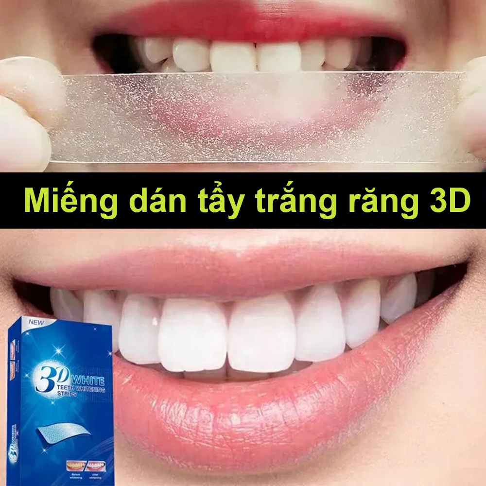 Miếng dán trắng răng tiện lợi 3D White Teeth Whitening Strips Miếng dán trắng răng 3D WHITE Teeth Whitening strips thuộc dòng sản phẩm DENTAL WHITENING KIT 3D đem đến cho bạn nụ cười trắng sáng rạng ngời chỉ sau 14 ngày sử dụng. Sức mạnh làm trắng của 3D WHITE Teeth Whitening strips mạnh gấp 25 lần các loại kem đánh răng làm trắng răng hàng đầu hiện nay. Bạn sẽ nhận thấy hiệu quả rõ rệt chỉ sau 3 lần sử dụng đầu tiên. 🔺 Hướng dẫn sử dụng: ◾ Súc miệng sạch (không đánh răng trước khi dán).Dùng tay khô và sạch trong quá trình tiếp xúc với miếng dán. ◾ Mỗi túi sẽ gồm 2 miếng dán, miếng dài sẽ được dán ở hàm trên và miếng ngắn sẽ dán ở hàm dưới; tách miếng dán ra khỏi vỏ; dán miếng dán lên răng, canh chỉnh cho miếng dán nằm sát với phần tiếp xúc giữa răng và nướu, ấn nhẹ để miếng dán dính chặt hơn vào răng; gấp phần mép của miếng dán ra mặt sau răng để cố định miếng dán. ◾ Để miếng dán trên răng sau 30 phút thì tháo bỏ. *Lưu ý: - Không dán sau khi đánh răng bằng kem đánh răng có thể gây ê buốt răng. - Miếng dán chỉ có tác dụng làm trắng cho răng tự nhiên, không giúp làm trắng răng giả hoặc hàm/niềng răng. - Không dùng nếu vùng lợi hoặc chân răng đang bị tổn thương. - Sản phẩm có thể gây ê / buốt răng nhẹ đối với người có men răng yếu vì có chất tẩy trắng răng. Mỗi miếng dán đều có bao bì riêng không sợ hư hỏng, không gây dị ứng đối với mọi loại cơ địa khác nhau, có tác dụng bảo vệ men răng và ngăn ngừa sự xuất hiện của cao răng. - Hãng khuyên dùng 1 liệu trình 14 ngày (tương đương 2 hộp) - Để duy trì hiệu quả miếng dán, bạn nên hạn chế sử dụng các thức ăn, thức uống có màu và dễ bám màu. Nếu có sử dụng thì bạn nên đánh răng ngay sau khi sử dụng. Không có liệu pháp nào đảm bảo răng sẽ trắng mãi mãi sau thời gian sử dụng nên bạn có thể thỉnh thoảng sử dụng nhắc lại miếng dán khi thấy răng xuống tone. *Mỗi gói bao gồm 1 miếng dán cho răng ở hàm trên và 1 miếng dán cho răng ở hàm dưới *HSD: in trên bao bì (Năm/tháng/ngày)