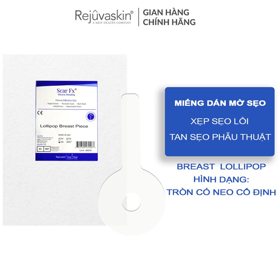 👉Miếng dán xóa mờ sẹo phẫu thuật ngực Scar FX Breast Lollipop với chiết xuất 100% silicone y tế, Scar FX Breast Lollipop hình gần như chiếc kẹo mút không chỉ làm giảm cảm giác ngứa, ửng đỏ mà còn cung cấp độ ẩm ức chế sản sinh collagen làm phẳng dần vết sẹo do phẫu th
