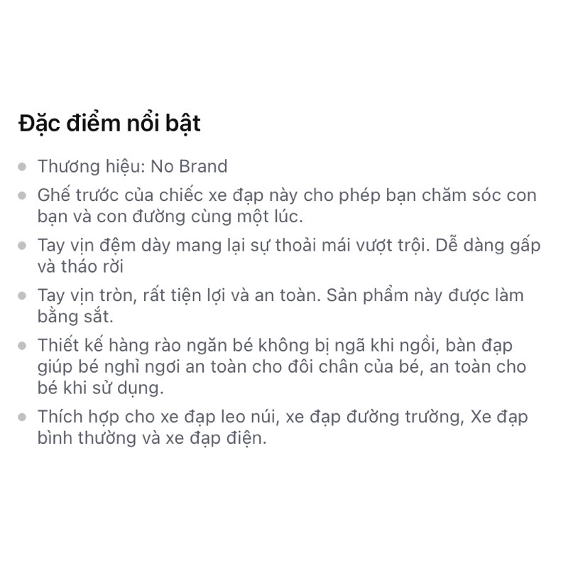 🆘Ghế đặt xe tay ga xe điện xe đạp điện 🆘 ✅Thích hợp cho xe chỗ để chân cỡ rộng >=25cm ✅Dành cho trẻ từ 8 tháng đến 5 tuổi Các bạn nên đo các chỉ số của xe trước khi đặt mua ghế ✅Xe thích hợp lắp là xe có khoảng cách từ yên xe đến phần trước xe lớn hơn 26cm ✅Chân ghế có thể thu cao thấp được ✅Ghế chịu trọng tải 40 kg, nặng 2,5 kg ☂️Kích thước: 48x22x20cm ✅Khung được làm bằng thép carbon phủ sơn siêu cứng, chịu sức nặng tốt. ✅Được tặng cùng dây buộc, sách hưỡng dẫn lắp đặt, tô vít, đệm ghế, đai an toàn. ……….♥️♥️♥️……. #mia_shop_cửa_hàng_đồ_em_bé #ghế_ngồi_cho_bé #chuyên_dầu_tử_hoa_hongkong #chuyên_ghế_lắp_ráp_xe_máy_xe_điện_cho_bé ———————————— • Shopee: https://shopee.vn/thuynhile • Facebook: https://w.facebook.com/cuahangdoembe/ ____________________________________________ 🏡 MIA SHOP: C10/31 Đinh Đức Thiện, x. Bình Chánh, h. Bình Chánh, tp HCM ☎️Hotline: 0917369497 (Quí khách vui lòng inbox để được tư vấn) 👉 Dịch vụ ship COD toàn quốc ‼️ 🕰 8:00 am - 8:00 pm