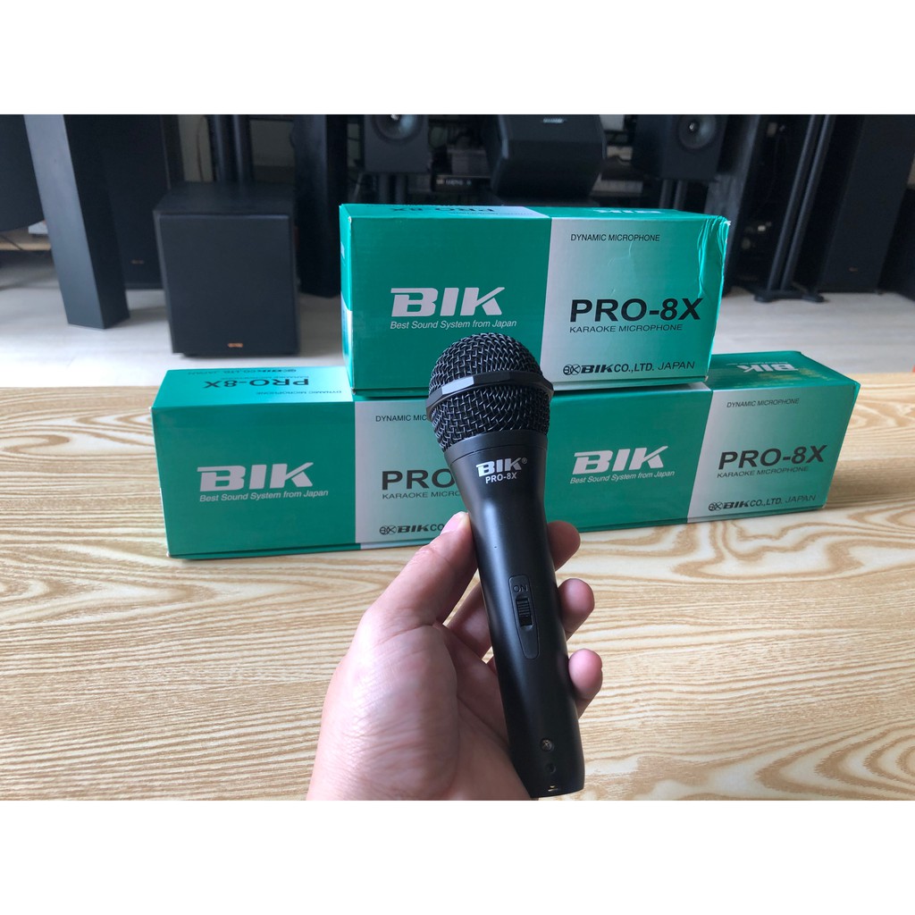 Micro karaoke Bik Pro-8 là sản phẩm micro không dây của hàng sản xuất micro nổi tiếng Nhật Bản BIK. Với người yêu âm thanh tại Việt Nam và thế giới thì thương hiệu này đã không còn xa lạ. Bik Pro-8 được sản xuất với mục đích chính dành cho karaoke gia đình hoặc các quán karaoke vừa phải, những phòng học, hội trường có không gian nhỏ. Micro BIK Pro-8 có tần số từ 50-16khz, độ nhạy -53.6db (1.6mv). Trong lượng của Micro BIK Pro-8 là 0.3kg. Vỏ ngoài của Micro BIK Pro-8 được làm từ kim loại có độ bền cao, bảo vệ micro bị rơi hoặc va đập mạnh. Bên cạnh đó để giúp người dùng không bị trơn, nhà sản xuất đã sơn một lớp nhám bên ngoài vỏ. Không những thế, Micro BIK Pro-8 cũng được dùng lưới tản nhiệt và chống rò rỉ điện. Micro BIK Pro-8 là một sản phẩm có chất lượng cao nhưng lại có giá thành khá thấp. Hiện nay BIK đã có xưởng sản xuất tại Việt Nam nên Mico BIK ngày càng phổ biến và trở thành một hãng Micro thông dụng tại Việt Nam. Đặc biệt, Micro BIK Pro-8 rất phù hợp với giọng của người Việt Nam đặc biệt là Việt Nam.