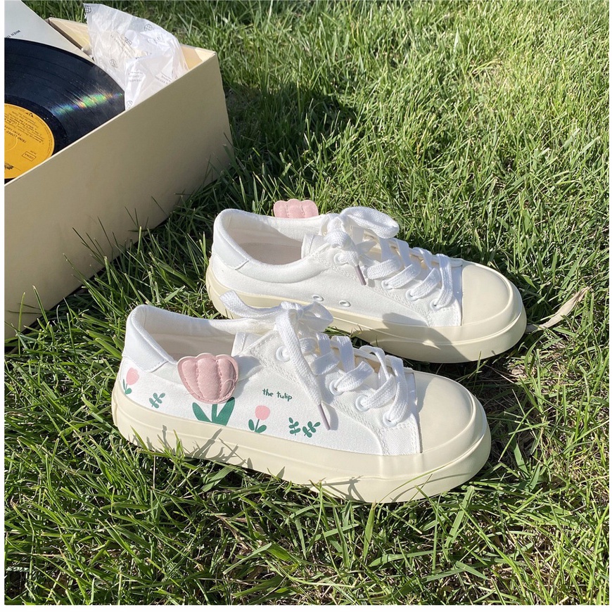 𝗺𝗶𝗲 𝘀𝘁𝘂𝗱𝗶𝗼 - Giày hoa tulip dễ thương đế bánh mì dễ phối đồ