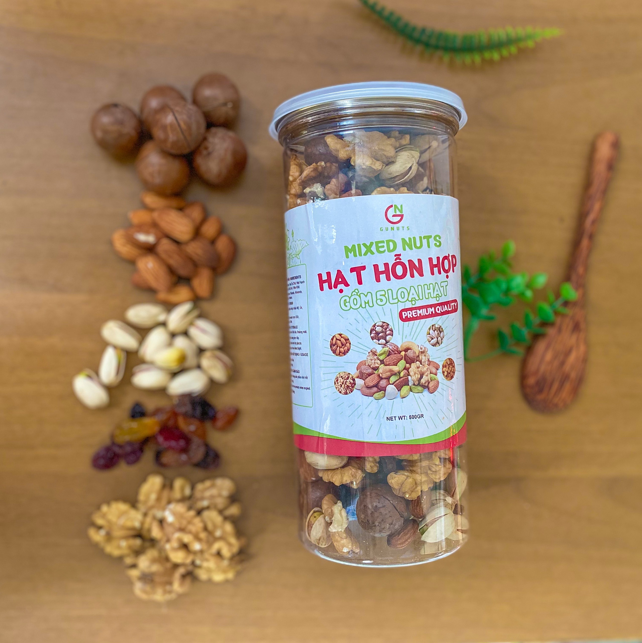 Mix Hạt Dinh Dưỡng - Hạt Hỗn Hợp Dinh Dưỡng Gunuts Bao Gồm 5 Loại Hạt Granola Siêu Hạt Đã Sấy Chín Ăn Liền: Hạt Hạnh Nhân, Hạt Macca, Hạt Dẻ Cười, Hạt Hạnh Nhân, Hạt Óc Chó Hộp 500gr