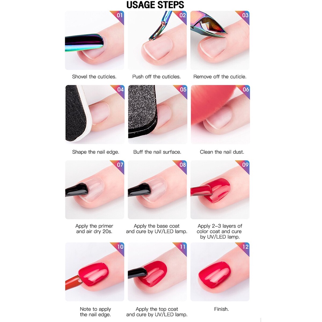 Cụ thể: Vật chất: Gel UV Thể tích: 8ml Kích thước: Xấp xỉ 6,8 * 3,0 * 1,8 cm Phong cách: 30 màu khác nhau để lựa chọn Công cụ sấy khô: Đèn UV, Đèn LED, Đèn UV / LED CCFL Đặc điểm: Chất lượng là ưu tiên số 1 của chúng tôi. Gel giữ được độ sáng bóng tối đa 30 ngày. Hầ