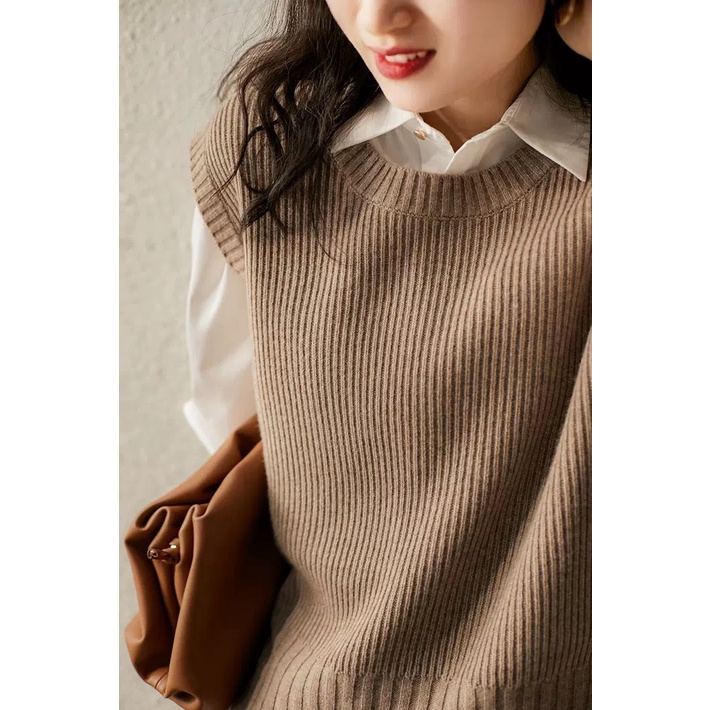 MS384 Áo gile len nữ cổ tròn đính khuy Hàn Quốc