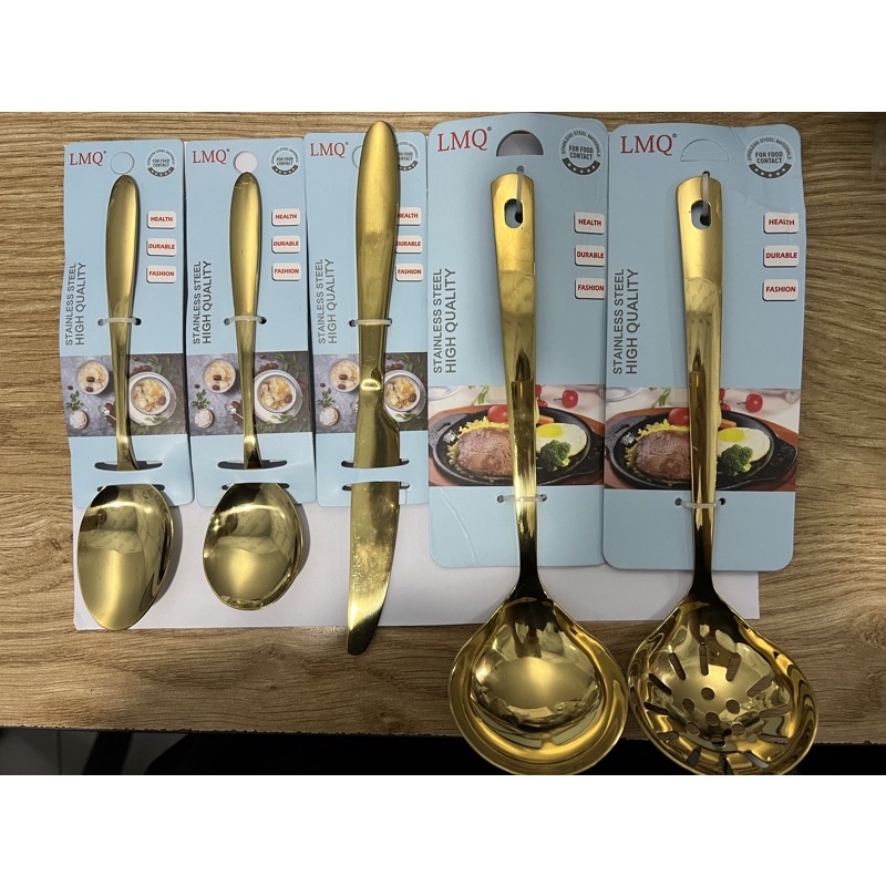 Muỗng, Nĩa, Dĩa, Vá, Dao Steak Inox Vàng SUS 304 Cao Cấp | Môi, thìa, rĩa inox vàng chuyên dụng Nhà Hàng,Khách Sạn,Decor