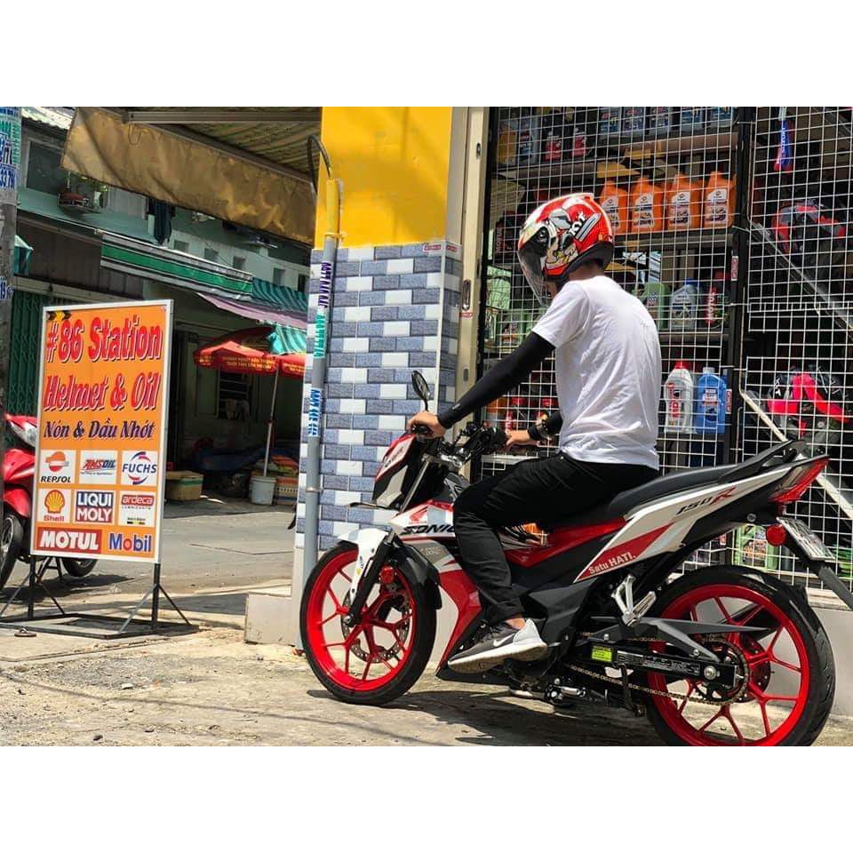Nón bảo hiểm , Mũ bảo hiểm 3/4 KYT Venom CORSI REPLICA hàng chính hãng ✲ Tổng quan về dòng mũ 3/4 KYT VENOM ✲ KYT Venom là thương hiệu được đông đảo các Biker biết tới là đơn vị tài trợ cho các giải đua Moto GP.Với form dáng vừa thể thao, cá tính vừa thanh thoát nhẹ nhàng cùng trọng lượng hợp lý và những tính năng an toàn khác. - Vỏ mũ được làm từ nhựa nhiệt dẻo cao cấp THERMOPLASTIC cho độ bền vượt trội cùng khả năng chống va đập. - Trên thân mũ còn được hãng trang bị lỗ móc khóa chống trộm. - KYT Venom có rất nhiều mẫu tem phù hợp với mọi đối tượng và cá tính. - KYT Venom CORSI REPLICA được trang bị hai lớp kính chắn giúp người dùng linh động trong các tình huống sử dụng. - Lớp kính chắn gió bên ngoài làm từ nhựa Polycarbonate với khả năng lọc tia UV 380. - Kính phụ tối màu sẽ hiệu quả trong điều kiện ánh sáng gắt. Thao tác đóng/mở vô cùng thuận tiện với nút bấm và cần gạt. - Các khe gió được bố trí hợp lý và hài hòa, vừa đảm bảo tính thẩm mỹ cũng như luồng khí lưu thông bên trong, giúp người đội luôn cảm thấy thoải mái trong quá trình sử dụng. - Khóa được làm từ kim loại kết hợp với nhựa dẻo vô cùng bền bỉ và chắc chắn, dễ dàng đóng/ mở chỉ với một tay. - Lót mũ được gia công tỉ mỉ với vật liệu cao cấp, khả năng hấp thụ lực cực tốt. - Lót mũ có thể tháo rời để vệ sinh. #mũ_kyt_chính_hãng #mũ_kyt_nfr #mũ_kyt_cũ #mũ_kyt_giá_rẻ #mũ_kyt_falcon #giá_mũ_kyt_3_4 #giá_mũ_kyt #kính_mũ_kyt #mũ_kyt_leopard #mũ_kyt_fullface #mũ_kyt_venom #fullface_kyt_tt_course #fullface_kyt_leopard #mu_bao_hiem_kyt #mũ_bảo_hiểm_fullface_kyt TUYỂN CTV TOÀN QUỐC #86STATION SHOP ZALO 0979028579 D/C 22K ĐƯỜNG 43B P10 Q6