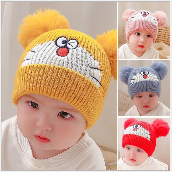 Nón mũ len 2 quả bông hình mèo xinh xắn đáng yêu cho bé 0 - 1 tuổi