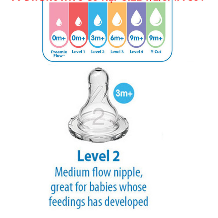Núm ty silicone Size 2 bình cổ thường (hay còn gọi là bình cổ nhỏ/cổ chuẩn/cổ hẹp): ❌ Lưu ý: ✅ Shop tách lẻ ty từ hộp lớn nên khách mua ty lẻ sẽ không có hộp kèm. ✅ Ty rất mới nên đôi khi khách thấy có mùi nhựa mới, nhưng mùi này là mùi ty mới chứ không phải mùi hôi - khách rửa sử dụng 1-2 lần sẽ hết. ✅ Khách vệ sinh ty bằng nước rửa bình sữa chuyên dụng và tráng nước sôi lạ khi bé chuẩn bị dùng, không trụng ty nhiệt độ cao sẽ làm ty mau bị hư. ✅ Ty của hãng Dr Brown's, tuy nhiên công ty Dr Brown's gia công nhiều nước như: Mỹ,Trung Quốc, Đức... thì made in us, gia công Trung Quốc Made in China, Germany.. 🌿 CHỌN SIZE: - Level 1 - dành cho bé sơ sinh - đi kèm theo bình trong tất cả các loại Bình sữa Dr Brown's , - Level 2 - dành cho bé từ 3 tháng trở lên, - Level 3 - dành cho bé từ 6 tháng trở lên, - Level 4 - dành cho bé từ 9 tháng trở lên, - Y-cut Level - dành cho bé từ 9 tháng trở lên - cắt hình chữ Y thích hợp cho bé ăn các thức ăn đặc hơn sữa. 🌿 ƯU ĐIỂM : - Được chế tạo từ từ chất liệu silicone cao cấp, hoàn toàn không chứa BPA, tuyệt đối an toàn cho trẻ. - Thiết kế hình dáng giống hệt vú mẹ nhằm giúp bé phát triển cơ hàm một cách tự nhiên thông qua sự cử động của lưỡi. - Thiết kế nhỏ nhắn, phù hợp với bình cổ hẹp của bình Dr.Brown's ngoài ra núm ty vừa vặn với vòm miệng bé, không quá bự làm bé khó chịu khi cho vào khuôn miệng - Thiết kế nhỏ nhắn, phù hợp với bình cổ hẹp của bình Dr.Brown's ngoài ra núm ty vừa vặn với vòm miệng bé, không quá bự làm bé khó chịu khi cho vào khuôn miệng - Lỗ tiết sữa có chức năng chống sặc với vị trí nằm trên đầu ty vì thế tia chảy sữa không chảy trực diện vào cổ họng bé tránh hiện tượng sặc khi bú. #numtydrbrown #TYBINHSUA #TYCOHEP #TYDRBROWN'SOPTIONPLUS