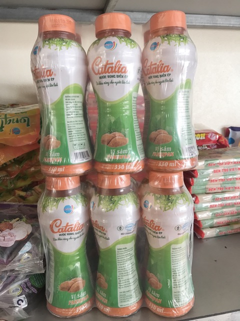 NƯỚC RONG BIỂN ÉP CATALIA VỊ SÂM FASIPAN - Hương vị: Vị sâm Fansipan,hương vị chanh leo,hương vị bòn bon - Đóng gói: Màng bọc nilon, - Dung tích 330ml/chai THÔNG TIN CHI TIẾT : Nước rong biển ép Catalia - Vị Sâm Fansipan - Nước rong biển ép Catalia - Sức khỏe vàng cho người lớn tuổi. - Nước rong biển ép Catalia vị sâm Fansipan là sản phẩm mới của công ty TNHH Long Hải. Sản phẩm nước rong biển ép vị sâm mang đến cho người dùng những công dụng đặc biệt như thanh nhiệt, mát gan, dễ ngủ và đẹp da của sâm rong biển. Nước rong biển ép Catalia sử dụng như một giải pháp hiệu quả cho cơ thể nhất là trong thời điểm nắng nóng như hiện nay. Với hàm lượng chất dinh dưỡng cao sẵn có trong rong biển như: vitamin, canxi, khoáng chất, protein… kết hợp với tinh chất quý của sâm Fansipan mang đến cho Nước rong biển ép Catalia hương vị thơm ngon hấp dẫn khiến khách hàng không khỏi nao lòng khi thưởng thức. Thành phần : Nước tinh lọc, đường glucoza, nha đam, sâm Fansipan (Khoảng 0,95%), tinh bột vòng, chất nền, chất chống tạo bọt, chất làm dày, chất điều chỉnh độ axit, chất bảo quản, một số chất bổ sung khác. - CHỈ TIÊU CHẤT LƯỢNG Năng lượngKcal/100g ≥ 30 Hàm lượng Carbonhydrate%KL ≥ 6 Hàm lượng đường tổng số%KL ≥ 6 Hàm lượng Canxi mg/kg ≥ 60 -Cách dùng: Lắc đều trước khi sử uống, ngon hơn khi uống lạnh - Thông tin cảnh báo an toàn: Không dùng sản phẩm hết hạn sử dụng hoặc sản phẩm có hiện tượng lạ. - Hướng dẫn bảo quản: Bảo quản nơi thoáng mát, tránh ánh nắng trực tiếp. - Nơi sản xuất : Công ty TNHH Long Hải, Cum CN1, xã Giã Xuyên, Huyện Gia Lộc, Tỉnh Hải Dương, Việt Nam - Sản xuất tại Việt Nam - Ngày sản xuất ; Hạn sử dụng : 19/12/2020