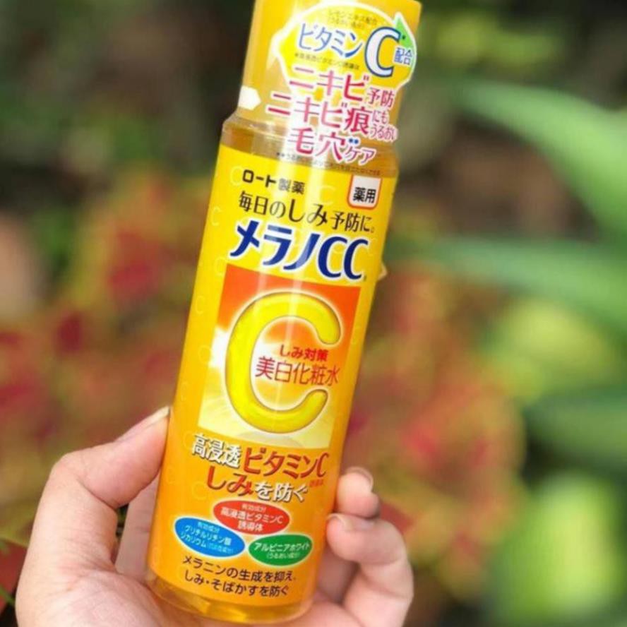 Nước hoa hồng Melano CC Rohto dưỡng trắng ngừa thâm 170ml Toner Melano CC Rohto - Meishoku *THÔNG TIN CHI TIẾT Nước hoa hồng Melano CC Rohto với hàm lượng vitamin C cao rất hiệu quả trong việc dưỡng da bởi tác dụng làm trắng, ức chế sản xuất melanin, xóa mờ tàn nhan, vết thâm mà tuyệt đối an toàn cho da, lành tính. ✔️THÀNH PHẦN VÀ CÔNG DỤNG - Dưỡng chất chứa nhiều vitamin C làm giảm quá trình sản xuất melanin, có tác dụng làm trắng da, xóa mờ các vết tàn nhang và vết thâm. - Chiết xuất từ nho, chanh, cam thảo giúp giữ ẩm, cung cấp nước cho làn da bạn mịn màng. - Nước hoa hồng Melano CC cũng lấy đi các tế bào chết trên da, làm sạch triệt để và dưỡng trắng cho da. - Làm giảm sưng, ngừa viêm các nốt mụn mang lại cho bạn một làn da sạch, khỏe mạnh, sẵn sàng cho các bước dưỡng tiếp theo. - Mùi chanh nhẹ nhàng giúp bạn thư giãn sau những giờ làm việc và học tập căng thẳng. ✔️HƯỚNG DẪN SỬ DỤNG - Sau khi rửa mặt sạch, lấy 1 lượng nước hoa hồng Melano CC vừa đủ thoa và vỗ nhẹ lên da để thẩm thấu. - Sản phẩm có thể dùng được cho cả da dầu, da khô và da thường nhé. 📦 Quy cách đóng gói: Chai 170ml ------------------------------- * Meishoku CAM KẾT: - Meishoku không bán hàng giả, hàng nhái, chất lượng luôn là hàng đầu để shop có thể phát triển thương hiệu và vươn xa. - Sản phẩm 100% giống mô tả - Tư vấn nhiệt tình, chu đáo luôn lắng nghe khách hàng để phục vụ tốt. - Giao hàng nhanh đúng tiến độ không phải để quý khách chờ đợi lâu để nhận hàng. ------------------------------- * Đổi trả theo đúng quy định của Shopee 1. Điều kiện áp dụng (trong vòng 03 ngày kể từ khi nhận sản phẩm): - Hàng hoá vẫn còn mới, chưa qua sử dụng - Hàng hóa hư hỏng do vận chuyển hoặc do nhà sản xuất. 2. Trường hợp được chấp nhận: - Hàng không đúng mã như quý khách đặt hàng - Không đủ số lượng, không đủ bộ như trong đơn hàng 3. Trường hợp không đủ điều kiện áp dụng chính sách: - Quá 07 ngày kể từ khi Quý khách nhận hàng - Gửi lại hàng không đúng mẫu mã, không phải hàng của Choobe - Đặt nhầm sản phẩm, chủng loại, không thích, không hợp,... #nuoc #hoa #hong #toner #melano #cc #melanocc #nuochoahongmelanocc #nuochoahong #duongtrang #vitaminC #vtmC #melanocc #Meishoku
