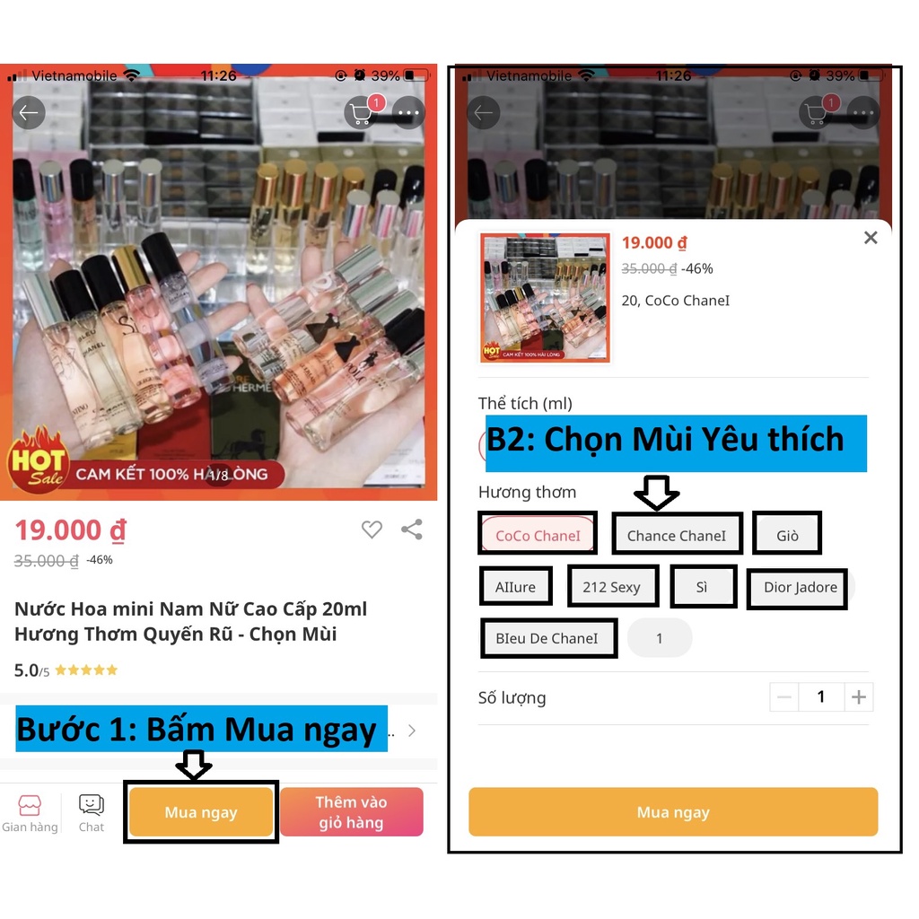 Nước Hoa mini Nam Nũ Cao Cấp 20ml Hương Thơm Quyến Rũ