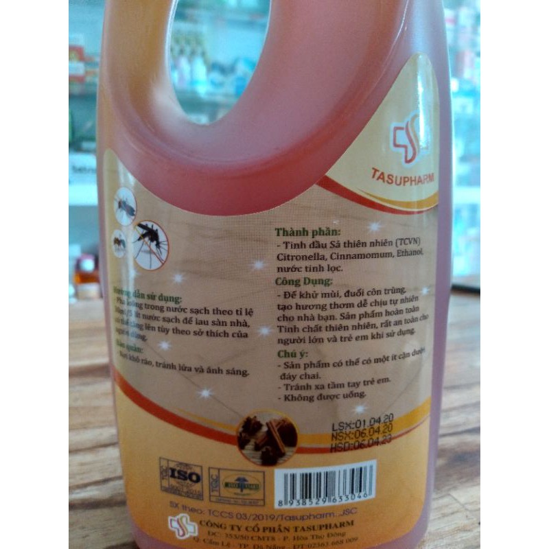 Nước lau sàn tinh dầu sả quế, sả chanh được chiết xuất từ nguyên liệu thiên nhiên. Đóng chai 1100ml và 1500ml - Khử trùng, xua đuổi côn trùng, đuổi muỗi hiệu quả. Thường được sử dụng tại các bệnh viện, phòng khám. - Hương sả quế hoặc sả chanh tự nhiên cực thơm, hiện đang được tìm mua trên khắp cả nước đặc biệt trong thời điểm có dịch như hiện tại ạ. Thành phần chính: tinh dầu sả, tinh dầu chanh hoặc tinh dầu quế, menthol (tinh dầu bạc hà), ethanol (cồn), nước tinh khiết.. HSD: 3 năm kể từ ngày sản xuất (đến 2023) ✅ Hướng dẫn sử dụng: Dùng nguyên chất sản phẩm để cho vào bình xịt phòng hoặc pha với nước để lau sàn nhà với liều lượng ít hay nhiều tùy sở thích mỗi người. (thông thường hòa khoảng 30ml nước lau sàn với 2,5 lít nước sạch). Có thể pha thêm với 1 ít cồn y tế trước khi lau sẽ tăng khả năng diệt khuẩn.