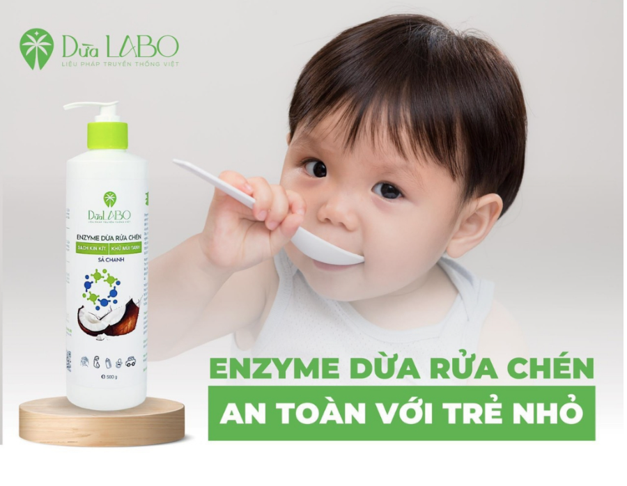 Nước Rửa Chén Enzyme Dừa - Dừa LABO : thành phần thiên nhiên, sạch khin khít, khử mùi, không hại da tay.