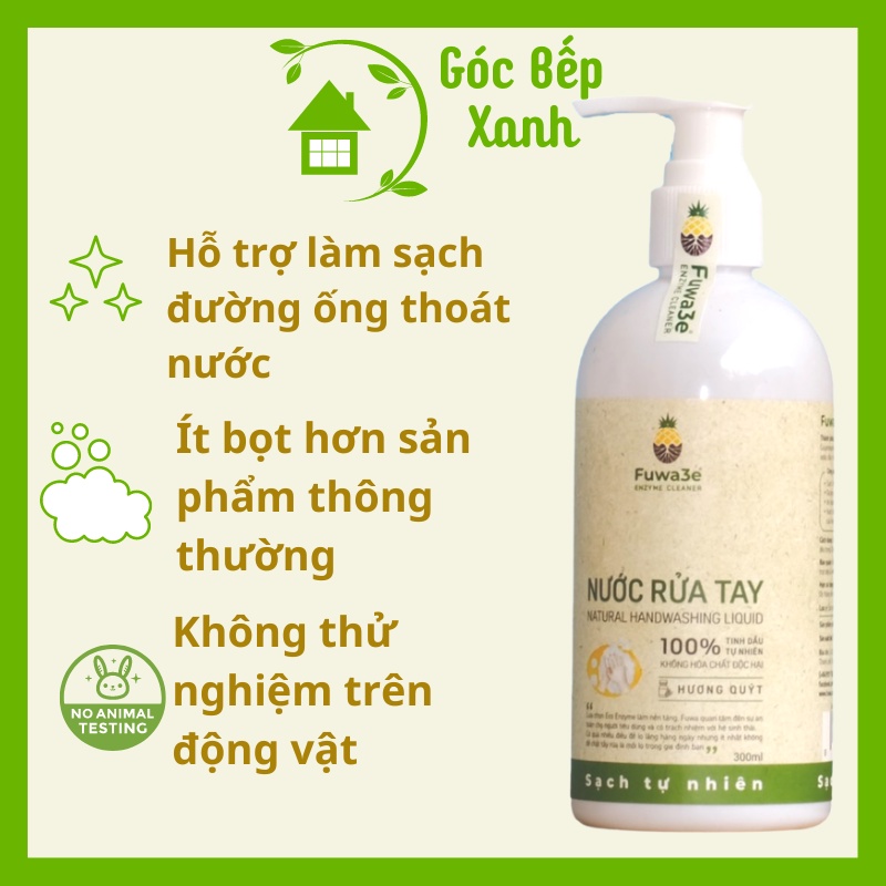 Nước rửa tay FUWA3E bồ hòn hữu cơ ☘ Dung tích 300 ml chiết xuất Enzym từ dứa và bồ hòn