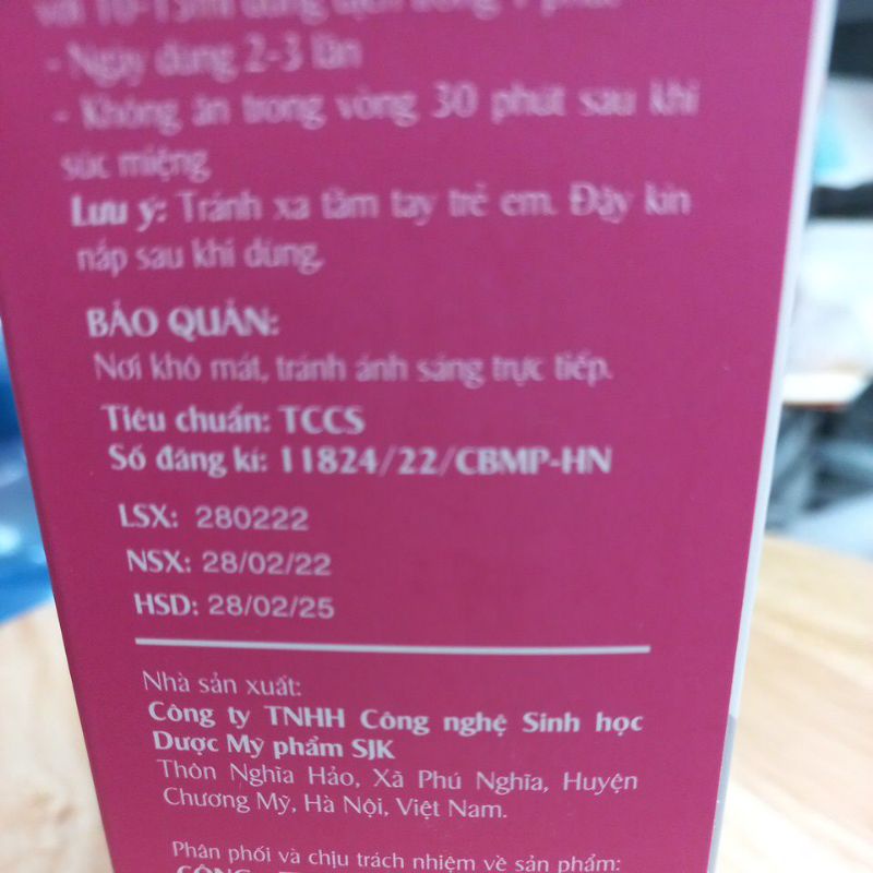 🍓Công dụng : làm sạch miệng, họng, hạn chế sự phát triển của v.i khu.ẩn, v.i.ru.s, làm sạch các mảng bám trên răng, ngăn ngừa hôi miệng ... 🍓Dùng trong các trường hợp : nhiệt miệng, v.i.êm chân răng, chảy m.á.u chân răng, viêm lợi, ê b.uốt răng. Đau họng, rát họng, ngứa họng, ho.... Chai 250ml 🍓Hương cam, dùng được cho cả trẻ em từ 6 tuổi và người lớn Hạn dùng 2025