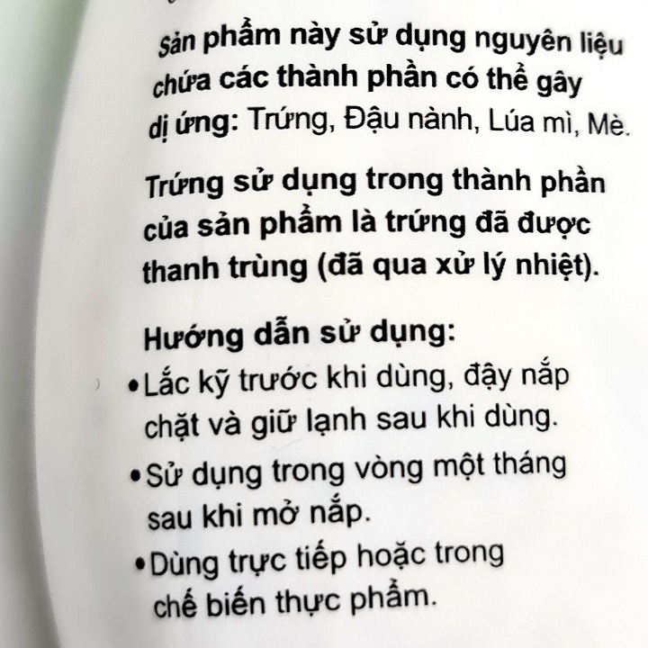 - Nước sốt mè rang Kewpie 210ml - Sản phẩm của Công Ty TNHH Kewpie Việt Nam (Thị xã Tân Uyên, tỉnh Bình Dương, Việt Nam). (Tập đoàn Kewpie, Tokyo, Nhật Bản). - Là loại nước chấm đậm đà với hương vị thơm đặc trưng của mè rang, rất phù hợp để chấm với các món lẩu, rau xanh hoặc rong nho. - Giá trị dinh dưỡng: Năng lượng 25.7 kcal, chất đạm: 0.2g, chất béo: 2.2g, carbohydrat: 1.8g. - Xuất xứ: Việt Nam. - Hạn sử dụng: 10 tháng kể từ ngày sản xuất.