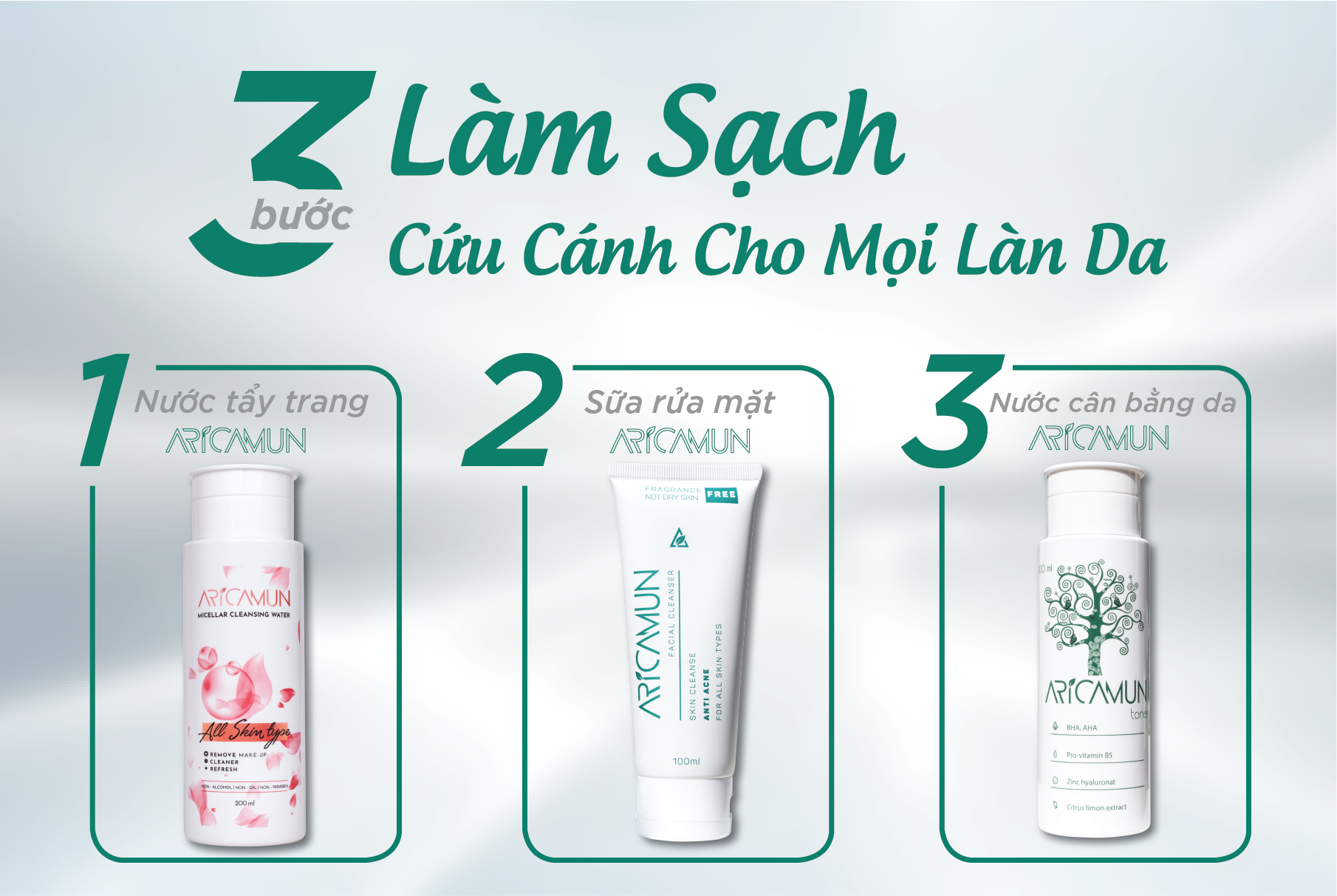 NƯỚC TẨY TRANG LÀM SẠCH DA ARICAMUN - MICELLAR CLEANSING WATER -Tẩy trang với Aricamun Micellar Cleansing Water là bước đầu tiên trong quy trình chăm sóc da, không chỉ làm sạch hết bã nhờn và lớp bụi bám lại trên da sau một ngày dài ngay cả khi không trang điểm -Thể tích: 200ml Thành phần: - Nước tinh khiết, dexpanthenol, cocamidopropyl betaine, sorbitol, xylitol, propylen glycol, aloe vera extract, cetrimide, disodium EDTA - Không cồn, không dầu, không paraben Công dụng -Các hạt micelle- có thành phần được lấy từ lipid của da là những hạt làm sạch vô hình siêu nhỏ.Chúng có khả năng hút các loại tạp chất vào bề mặt bông gòn trong khi vẫn duy trì lớp màng bảo vệ tự nhiên của da -Dễ dàng làm sạch lớp trang điểm, bụi bẩn và bã nhờn chỉ trong 2 mặt của miếng bông tẩy trang -Bổ sung thành phần làm ẩm da và khóa ẩm, ngăn mất nước -Mang đến làn da sạch và mềm mịn Lưu ý: -Chỉ dùng ngoài da, nếu kích ứng da xảy ra, ngưng sử dụng và tham khảo ý kiến của bác sĩ da liễu. Bảo quản: -Giữ ở nơi thoáng mát, tránh ánh nắng trực tiếp. Hướng dẫn sử dụng: - Mở nắp, dùng bông tẩy trang ấn nhẹ vào miệng lọ. - Làm sạch vùng da mặt: lặp lại đến khi bông tẩy trang không còn bẩn. - Đối với mắt và môi: giữ miếng bông tẩy trang 2-3 giây rồi làm sạch tương tự như trên. -Rửa sạch da bằng sữa rửa mặt chuyên dụng và tiếp tục các bước dưỡng da của bạn.Giá sản phẩm trên Tiki đã bao gồm thuế theo luật hiện hành. Bên cạnh đó, tuỳ vào loại sản phẩm, hình thức và địa chỉ giao hàng mà có thể phát sinh thêm chi phí khác như phí vận chuyển, phụ phí hàng cồng kềnh, thuế nhập khẩu (đối với đơn hàng giao từ nước ngoài có giá trị trên 1 triệu đồng).....