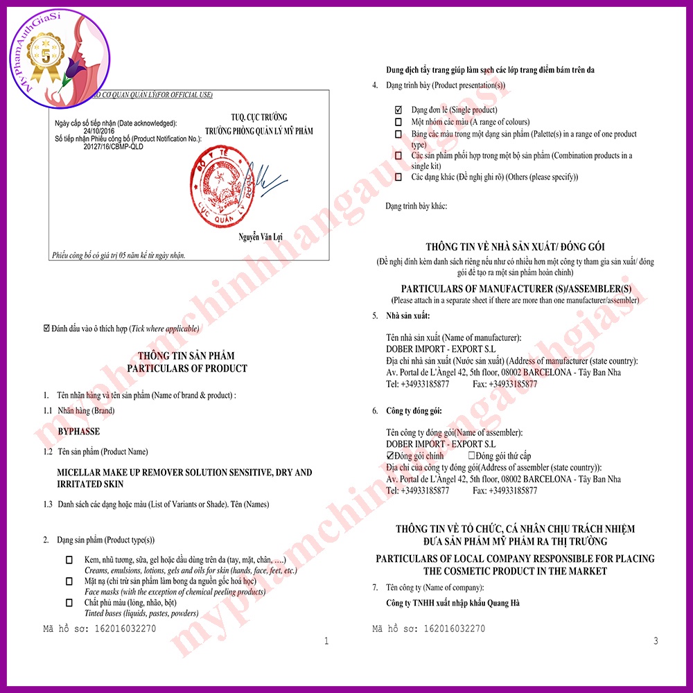 Nước tẩy trang Byphasse Face Make Up Remover dưỡng ẩm và làm sạch da 500ml Tây Ban Nha Được làm theo công thức Micellar được xem là bản dupe của tẩy trang Bioderma micellar cleansing water thu hút tất cả bụi bẩn, mảnh vỡ của lớp makeup bám trên da giúp da sạch hiệu quả mà không nhờn dính hay khô da, không mùi không cồn. Nước tẩy trang của Tây Ban Nha được xem là bản dupe của tẩy trang Bioderma được sử dụng công nghệ Micellar facial cleanser,micellar cleansing water lấy đi tất cả bụi bẩn, cả lớp makeup cứng đầu giúp da sạch hiệu quả. Nước tẩy trang Byphasse Face Make Up Remover dưỡng ẩm và làm sạch da 500ml Tây Ban Nha - Dung tích: 500ml - Xuất xứ: Tây Ban Nha - Thương hiệu: Byphasse Nước tẩy trang Byphasse Face Make Up Remover dưỡng ẩm và làm sạch da 500ml Tây Ban Nha Thành Phần - Aqua, Glycerin, PEG-6 Caprylic/Capric Glycerides, Propylene Glycol, Disodium Cocoamphodiacetate, Polyaminopropyl Biguanide, Panthenol, Disodium EDTA, Decyl Glucoside, Parfum, Citric Acid, Bisabolol, Sodium Hydroxide. Chức năng - Công dụng - Nước tẩy trang giúp tẩy sạch hiệu quả các chất bẩn và bã nhờn sâu trong lỗ chân lông cùng với lớp trang điểm trên da.công nghệ tiên tiến Micellar với các hạt dầu cực nhỏ giúp tẩy trang sạch không gây bết dính sau khi sử dụng. - Có chứa nước khoáng giúp rửa sạch các chất bẩn còn sót lại trước khi làm sạch với nước - Với các bạn yêu thích các sản phẩm gía thành rẻ nhưng an toàn thì Nước tẩy trang của Tây Ban Nha sẽ là lựa chọn tốt vì chỉ 1 chai thôi mà dụng được rất lâu - Với các hạt dầu cực nhỏ giúp tẩy sạch và hiệu quả các vùng nhỏ trên da, không gây bết dính sau khi sử dụng. Hướng dẫn sử dụng - Thấm sản phẩm vào bông tẩy trang và lau trên mặt theo chuyển động tròn đến khi nào thấy bông không còn màu nữa thì dùng thôi. Trong quá trình sử dụng sản phẩm, nếu có vấn đề gì cần tư vấn thì hãy liên hệ với Shop để được hỗ trợ nhé. Lưu ý: NSX & HSD được đánh dấu trên hình minh họa chỉ cho KH biết vị trí nhà sản xuất ghi NSX ở đâu trên sản phẩm, chứ đó không phải NSX và HSD của SP hiện tại KH mua của Shop. Vì SP mà KH mua là lô hàng mới nhất được sản xuất cho nên HSD = NSX + 36 tháng ( tức 3 năm). KH muốn biết chính xác NSX và HSD của SP, vui lòng liên hệ trực tiếp với Shop để được giải đáp rõ ràng nhất. Xin cám ơn! XIN CHÂN THÀNH CÁM ƠN QUÝ KHÁCH ĐÃ QUAN TÂM VÀ ỦNG HỘ SHOP! #tay_trang #nuoc_tay_trang #nuoc_tay_trang_byphasse #byphasse #nuoc_tay_trang_500ml #nuoc_tay_trang_tay_ban_nha #nuoc_tay_trang_byphasse_150ml #nuoc_tay_trang_khong_con #nuoc_tay_trang_make_up #nuoc_tay_trang_sach_da