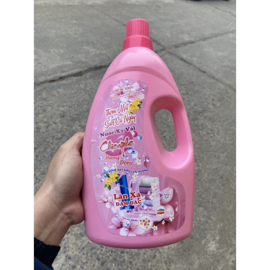 Nước Xả Vải Đậm Đặc, Hương Dony, Công Nghệ Hạt Siêu Lưu Hương, 1 Lần Xả Đậm Đặc, Can 1.8L Hướng dẫn sử dụng nước xả vải CHICAPHE Sau khi giặt sạch và ở lần xả nước cuối cùng thì cho nước xả vải CHICAPHE vào. Công thức: 1/2 nắp xả vải dùng cho 15 đến 20 chiếc quần, á