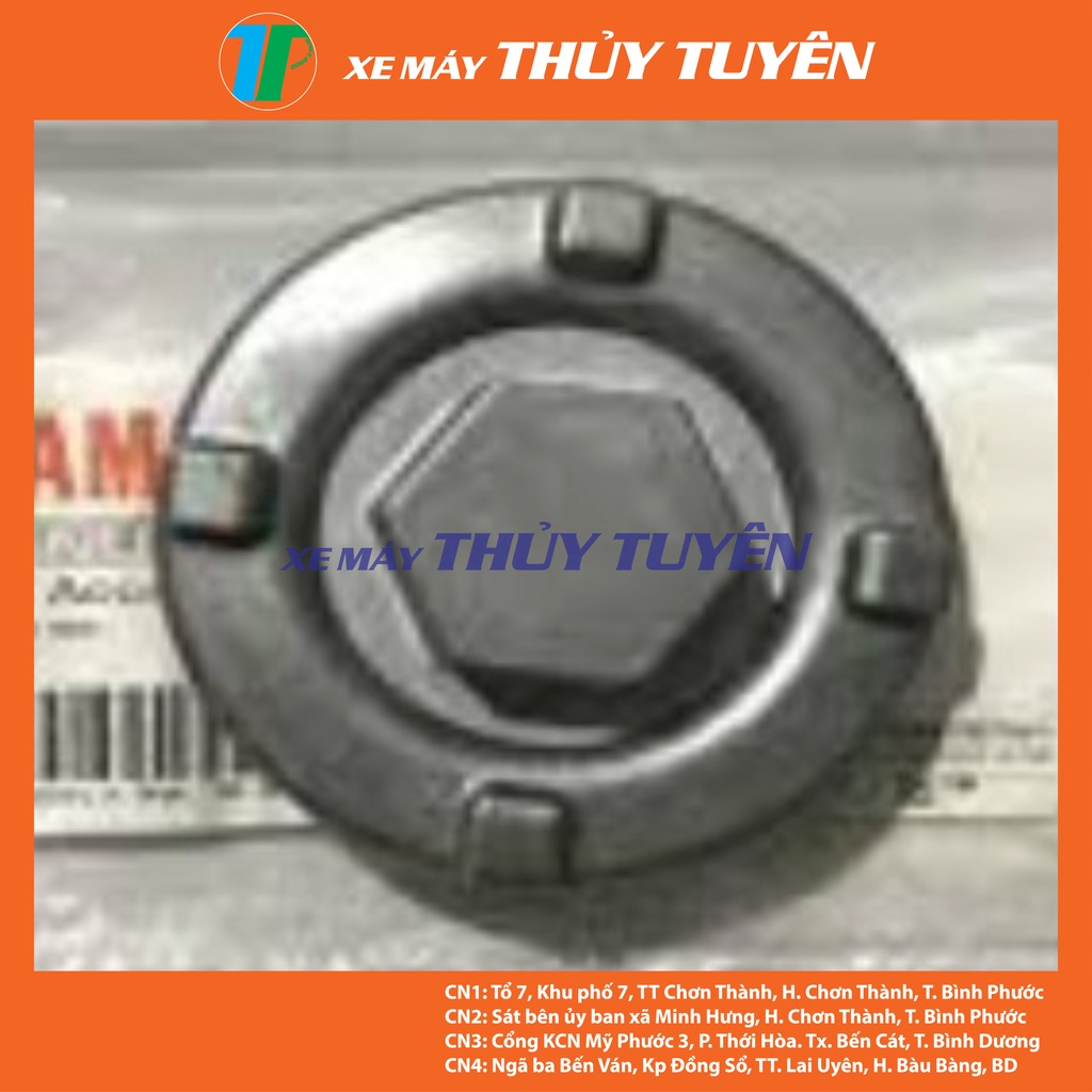Nắp xả nhớt zin Exciter 2010-135-150 chính hãng Nên thay cả combo khi xe chạy lâu ngày, ron bị chai dễ xì nhớt, lưới lọc không lọc hết mạt sắt được. Loại xe sử dụng :, Exciter 2010-135-150 Xuất xứ: Việt nam Cung cấp bởi: Đại lý Yamaha Town Thủy Tuyên Phát Hotline phụ tùng: 0834.555.458 Cn1: YAMAHA Thủy Tuyên Phát 1 Cổng KCN Mỹ Phước 3, số 07, tổ 1, Kp 3A, p.Thới Hòa, Tx.Bến Cát, T.Bình Dương. Cn2: YAMAHA Thủy Tuyên Phát 2 Ngã Ba Bến Ván, ấp Đồng Sổ, TT.Lai Uyên, H.Bàu Bàng, T.Bình Dương. CN3: Xe máy Thủy Tuyên Số 04, tổ 7, KP 7, TT.Chơn Thành, H.Chơn Thành, T.Bình Phước. CN4: Xe máy Thủy Tuyên 2 Sát bên Ủy ban xã Minh Hưng, PHỤ TÙNG CHÍNH HÃNG THỦY TUYÊN PHÁT sử dụng chính sách giao hàng tận nơi trên toàn quốc nhầm phục vụ cho quí khách hàng không có thời gian đi mua, khách hàng ở xa và đặc biệt là khách ở những tỉnh thành lân cận không có điều kiện thuận lợi đi mua hàng. PHỤ TÙNG CHÍNH HÃNG THỦY TUYÊN PHÁT mong muốn tạo thêm một sự lựa chọn mới cho quí khách hàng và mang đến những phụ tùng xe máy chất lượng nhất, và giá cả tốt nhất.