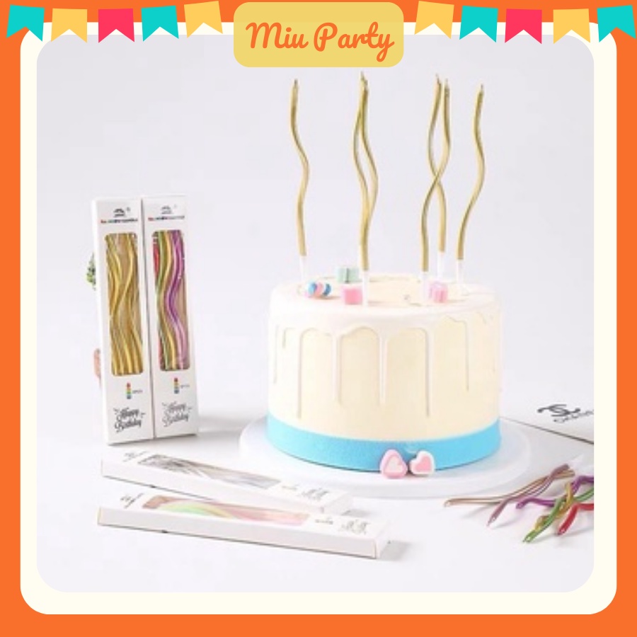 Nến sinh nhật cong, đèn cày cao cấp màu nhũ cầu vồng vàng gold trang trí bánh kem Hàn Quốc - Miup Party