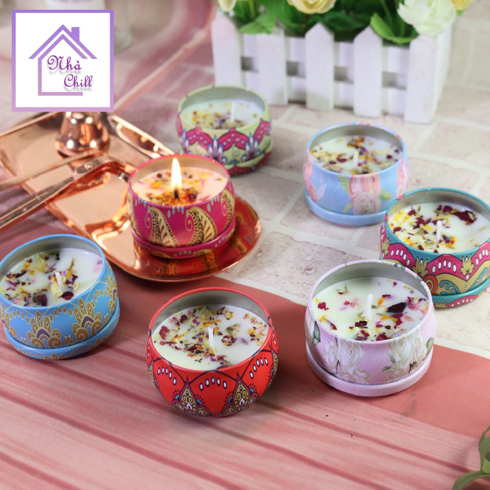 Nến Thơm Hoa Khô Từ Tinh Dầu Thiên Nhiên Siêu Thơm Liệu Pháp Thư Giãn Mùi Hương 120g