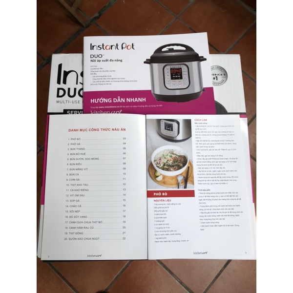 Nồi áp suất đa năng điện tử INSTANT POT 7 in 1- Top bán chạy số 1 Amazon Hoa Kỳ - giúp bạn nấu nhiều món ngon, lưu giữ đến 90% lượng vitamin bổ dưỡng và tiết kiệm thời gian nấu nướng của gia đình bạn nhờ các ưu điểm vượt trội như sau: * Kết hợp 7 tính năng trong 1 sản phẩm: Nấu áp suất, nấu cơm, nấu chậm, làm sữa chua, hấp, áp chảo (xào) và hâm nóng. * 14 chế độ nấu thông minh: Súp/Nước dùng, Thịt/Hầm, Đậu/Đỗ, Gia cầm, Áp chảo/Ninh, Cơm, Ngũ cốc, Cháo, Hấp, Nấu chậm, Giữ ấm, Làm sữa chua, Thủ công và Nấu áp suất. Các món ăn yêu thích của bạn sẽ được thực hiện dễ dàng, thơm ngon chỉ với một nút bấm. * Hỗ trợ nấu ăn rất nhanh và tiết kiệm điện tới 70% so với các phương pháp nấu truyền thống. Nồi gần như không gây ồn hay bị rò rỉ hơi nước, món ăn giữ được hầu hết lượng vitamin bổ dưỡng và hương vị mà không làm nóng không gian bếp, giải phóng sức lao động cho gia đình bạn: không cần đứng bếp khi nấu. * Có chế độ hẹn giờ trước 24 giờ và tự động giữ nhiệt khi món ăn hoàn thành. * Lòng nồi áp suất bên trong được làm bằng inox 18/8 với đáy 3 lớp hấp thụ nhiệt tốt và chống xoay. Đây là tính năng rất lý tưởng khi làm các món xào, áp chảo. Ngoài ra, Vỏ nồi được làm từ thép không gỉ chắc chắn giúp cho nồi có độ bền cao, dễ dàng lau chùi và không bám vân tay. * Dễ dàng sử dụng với Bảng điều khiển và Màn hình hiển thị chi tiết. * Nồi đã đạt chứng nhận an toàn của UL&URL với 10 cơ chế an toàn được kiểm chứng, đảm bảo an tâm cho người dùng và công nghệ đã được cấp bằng sáng chế. PHỤ KIỆN KÈM THEO NỒI: Giá đỡ kèm tay cầm, sách hướng dẫn sử dụng. THÔNG SỐ KỸ THUẬT: - Bảng điều khiển: Điện tử - Chất liệu lòng nồi:Inox - Dung tích: 5.7 Lít - Chất liệu vỏ:Thép không gỉ - Hẹn giờ: Có - Màn hình hiển thị:LED - Công suất: 1000W - Nguồn điện áp:220V/50Hz - Kích thước: 34cm x 31cm x 33cm - Dây nguồn: 88,9cm, tháo rời, 3 chân cắm - Trọng lượng sản phẩm: 5.53kg - Thương hiệu: Canada - Sản xuất tại Trung Quốc CHẾ ĐỘ BẢO HÀNH: - Cam kết hàng chính hãng, thương hiệu Canada - Bảo hành 12 tháng nếu bị lỗi nhà sản xuất - Đổi trả trong vòng 07 ngày khi nhận hàng nếu bị lỗi sản xuất LƯU Ý: Chất lượng INSTANT POT là đồng đều trên toàn cầu, chỉ khác biệt một số chi tiết như chấu dây cắm, điện áp, ngôn ngữ bảng điều khiển, sách hướng dẫn sử dụng, ...