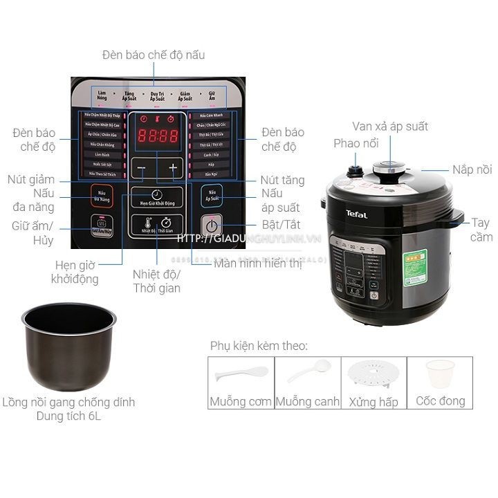 Đặc điểm nổi bật: - Công suất: 1000W - Chức năng nấu: 15+2 - Lồng nồi gang chống dính, độ dày lên đến 1.5mm - Vỏ bên ngoài bằng nhựa cách nhiệt - Vật dụng đi kèm: muỗng canh, muỗng cơm - Có bảng hiện thị bàng LED - Dung tích: 6L - Màu sắc: Đen - Nấu ăn nhanh: nồi áp