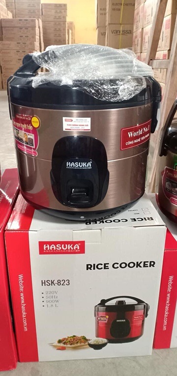 Nồi cơm điện hasuka hsk-858và 868. NỒI CƠM ĐIỆN HASUKA Model: HSK-858_868 Thông số kỹ thuật Màu sắc Cà phê; Xanh Điện áp: 220V – 50Hz Công suất: 500W Dung tích: 1,2L và 1,8L Chế độ Nấu chín, Giữ ấm, Hâm nóng Loại nồi Nắp liền Chất liệu vỏ nồi Inox Chất liệu lòng nồi