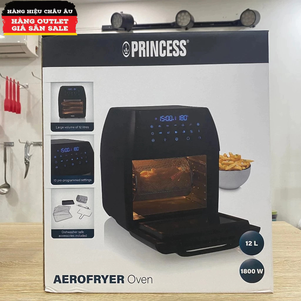 Nồi Chiên Không Dầu 12L PRINCESS Hà Lan Màu Đen 10 Chế Độ Lò Nướng Chiên Thịt Cá Hải Sản Sấy Khô Hoa Quả Nướng Bánh