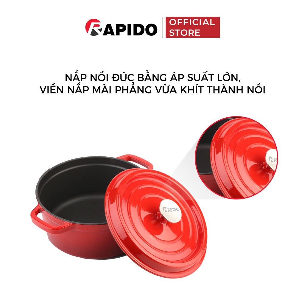 Nồi Gang Đúc Tráng Men Rapido size 20cm, 22cm, 24 cm, Nồi Gang Kho Thịt Cá, - TQ076