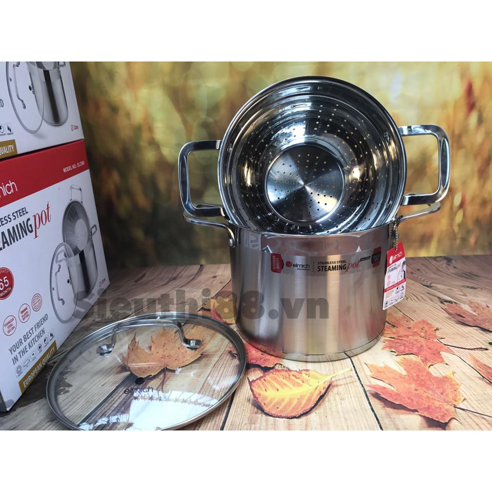 - Nồi hấp Inox 304 Elmich EL336X có cấu trúc 5 lớp đáy giúp truyền và giữ nhiệt tốt - Nồi được làm từ chất liệu inox 304 cao cấp mang đến sự an toàn tuyệt đối cho sức khỏe người sử dụng - Quai cán bằng inox gắn đinh tán chắc chắn giúp các bà nội trợ di chuyển nồi