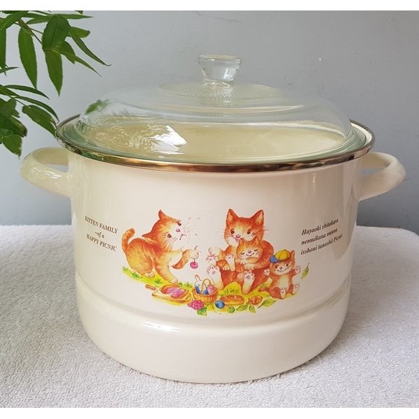 Nồi Hấp Tráng Men Cao Cấp Nhật Bản Fujihoro .Hoa Văn Con Mèo Kit-24SM.nhập khẩu THÁI LAN.tặng 1 vá canh inox