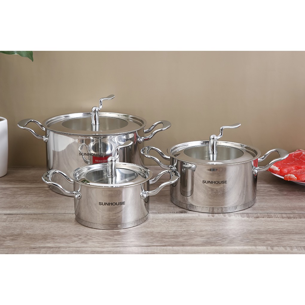 NỒI INOX CAO CẤP 5 ĐÁY SUNHOUSE SHG2516/2520/2524MSA size 16/20/24cm