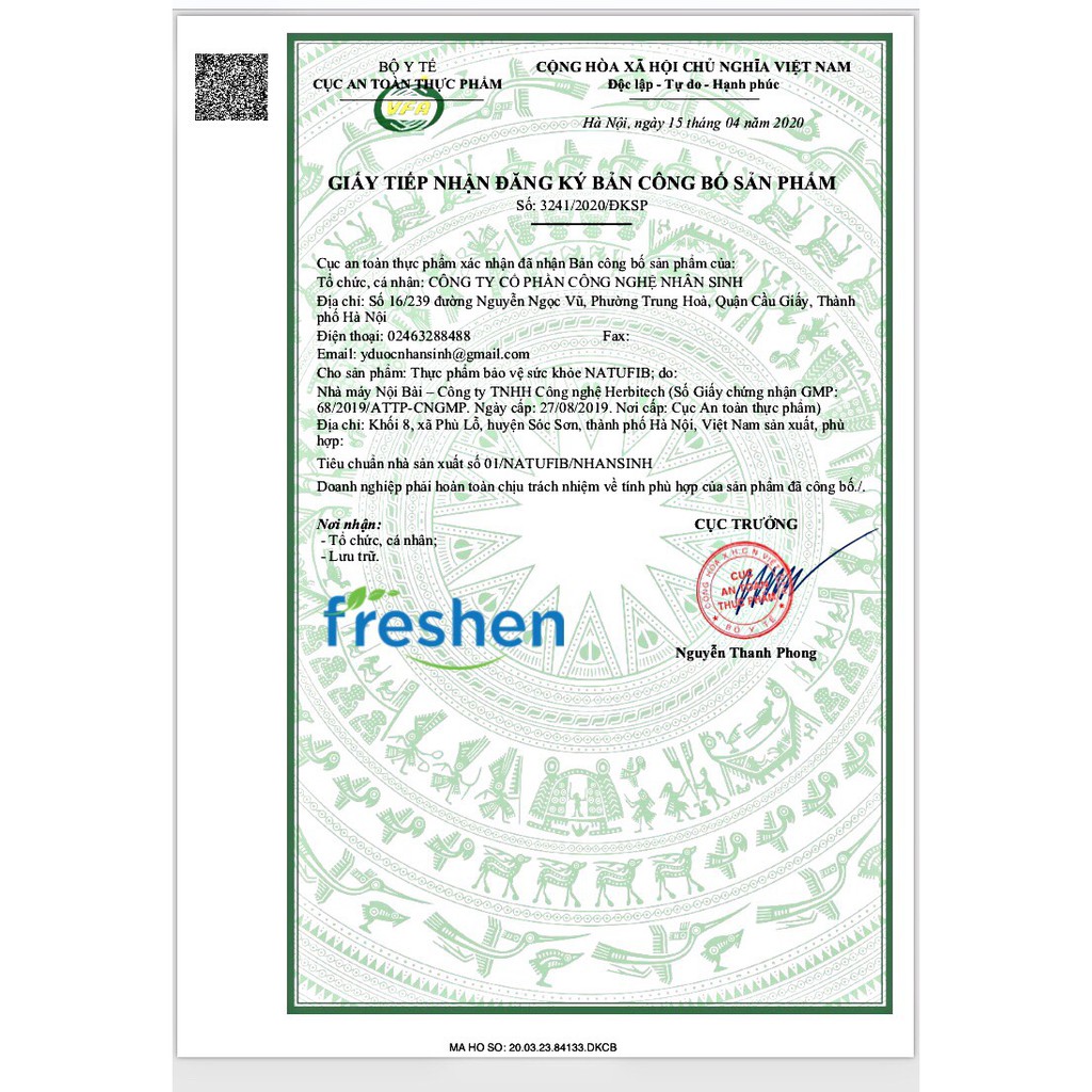 Natufib là sản phẩm do Công ty TNHH Công nghệ INTECHPHARM, được coi là sản phẩm phòng táo bón an toàn và hiệu quả cho cả trẻ nhỏ và phụ nữ có thai. Natufib là Thực phẩm chức năng có chứa Vitamin (A, D, B1, B2, B6) và chất xơ hòa tan fructooligosaccharid (FOS) được c