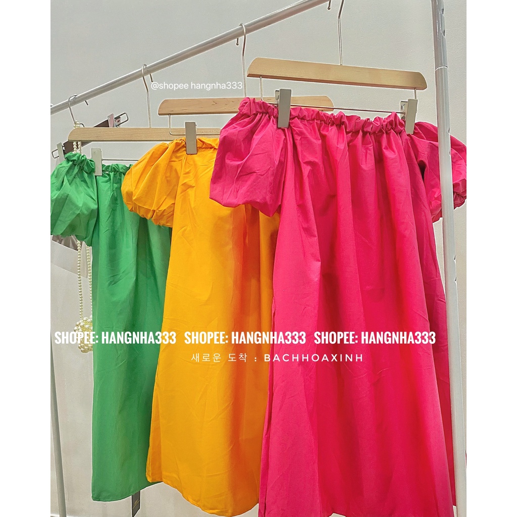 LƯU Ý: BACHHOAXINH CHỈ CÓ DUY NHẤT MỘT GIAN HÀNG NÀY TẠI SHOPEE!! *Ảnh chính chủ BACHHOAXINH - Các shop vui lòng không chèn/đè Logo ạ <3 Bachhoaxinh chào cậu🌹 THÔNG SỐ: Váy dài 73cm, phần chun vai 70~105cm ✨Colours: XANH LÁ - BƠ - HỒNG - CAM Màu nào cũng iu hết khá