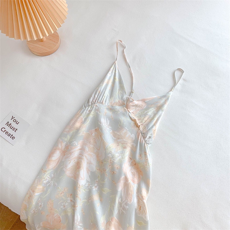 New ins broken flowers fresh and soft suspender nightgown women summer thin high-looking silk household pajamas women