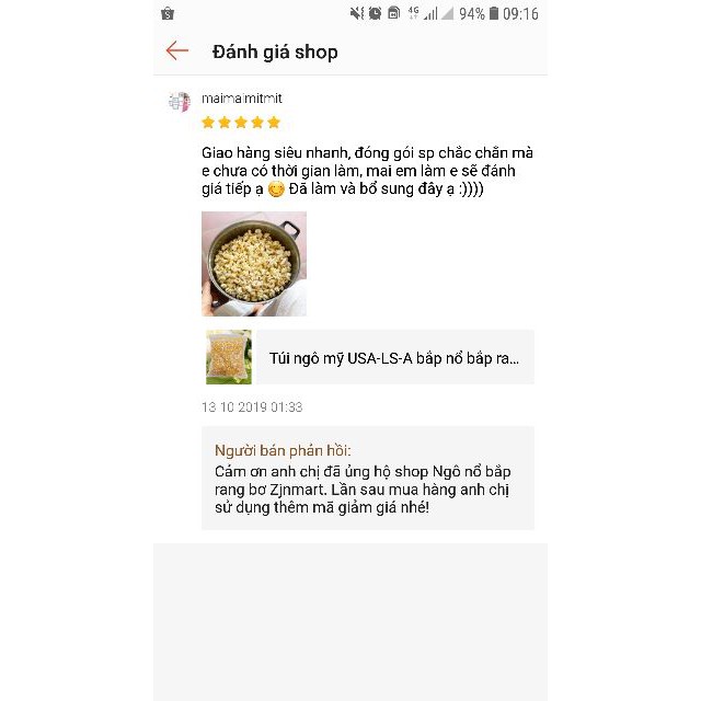 NGÔ MỸ NỔ BẮP RANG BƠ HIỆU NGÔI NHÀ ĐỎ Sản phẩm là ngô sống nguyên hạt được đóng gói thành túi theo các trọng lượng bên dưới. Ngô này chỉ có các quốc gia ở châu mỹ có thể trồng cho hiệu quả năng suất. Ngô thương hiệu ngôi nhà đỏ đã được nhiều bạn biết đến và được sử dụng rộng rãi ở các nơi làm bắp rang bơ. Với độ mẩy của ngô tốt, bắp nổ đều, trắng đã tạo nên thương hiệu yêu thích Xuất xứ: USA Hạn sử dụng: 4-2023 Cách làm bắp rang bơ tại nhà bằng nồi cơm điện Bước1 Rửa lòng nồi cơm điện thật sạch và để cho thật khô. Việc này giúp làm giảm thời gian làm nóng nồi đồng thời để món bắp rang bơ được nổ đều và ngon hơn. Bước2 Tiếp theo, cho 10ml dầu ăn vào nồi cơm điện và gạt nút sang chế độ Cook (Nấu) trong khoảng 1 phút rồi cho 50g bơ vào và đậy nắp nồi lại. Cứ khoảng 2 phút, bạn mở nắp nồi kiểm tra và chắc chắn rằng bơ phải tan hết thì mới có thể tiếp tục làm công đoạn tiếp theo. Bước3 Khi bơ đã tan hết, chuyển nồi cơm điện sang chế độ Warm (Hâm nóng) rồi cho bắp hột vào nồi, đảo đều để bắp ngấm dầu ăn và bơ. Đậy nắp nồi lại đồng thời gạt nồi sang chế độ Cook và đợi khoảng 1 phút. Sau đó mở nồi và đảo đều thêm lần nữa rồi đậy nắp lại. Khi bắp bắt đầu nổ thì dùng đũa dài đảo đều để bắp được nổ đều tới khi tiếng nổ đều và ngưng hẳn. Để bắp không bắn tung tóe ra xung quanh, bạn nên chuẩn bị một cái nắp có đường kính bằng lòng nồi cơm điện và có lỗ ở giữa để có thể dễ dàng cho đũa vào đảo bắp. Bước4 Khi tiếng nổ ngưng hẳn cũng là lúc hoàn thành. Cho bắp rang bơ ra khay rộng và để nguội là có thể thưởng thức. #Ngomynobaprangbo #NgoMy #anvat #xemphimtainha #ngomy #ngomynobaprangbo #ngousanobaprangboloai1 #ngomygiare #ngomyloai1giare #nobaprangbotainha #cachlambaprangbo #lambaprangbotainha #lambaprangbobangnoicomdien #lambaprangbodongian
