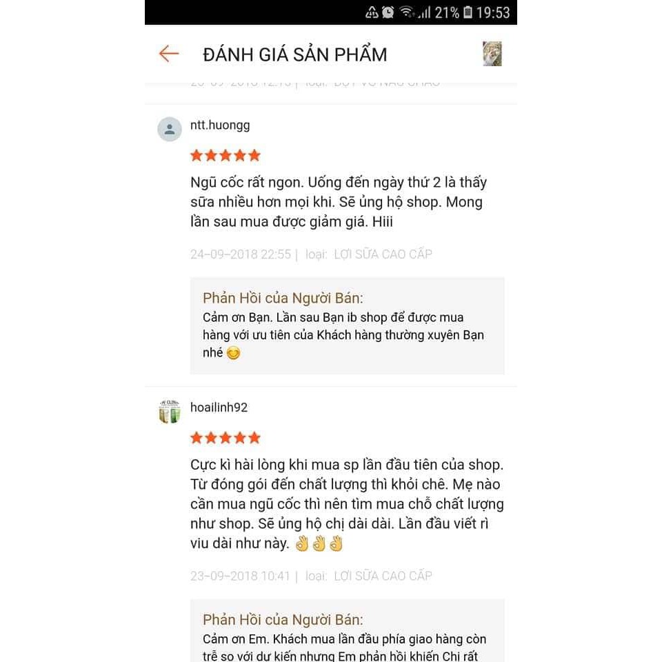Ngũ cốc lợi sữa cao cấp Cô Thắm ( Gói 500G) (Loại đặc biệt 18 hạt) Chú ý các Mẹ pha nước ấm tầm 70-80 độ nha, bột sẽ tan và ko bị vón cục, pha nước nóng sẽ vón cục nhé. Loại bột nào pha nước nóng cũng bị vón. Hoặc các Mẹ pha trước với 1 ít nước lọc nguội trước cho bột tan hoàn toàn rồi thêm nước nóng vào nha Để ngon hơn Mẹ thêm chút đường hoặc sữa đặc uống sẽ cực ngon ^^ Hàng mới xay mỗi tuần nên các mẹ yên tâm THÀNH PHẦN ( 18 loại hạt) : Hạt óc chó đỏ Mỹ, Hạt óc chó vàng Mỹ, Hạnh nhân Mỹ, Macca daklak, Yến mạch nguyên cám Úc, Hạt Chia Úc, Hạt điều Bình Phước, Hạt sen Huế, Đậu xanh quê, Đậu đen xanh lòng quê, Đậu nành quê, Đậu đỏ quê, Vừng đen quê, Ý dĩ, Kê, Ngô nếp, Gạo lứt quê, Nếp lứt quê.. Tất cả các loại hạt dinh dưỡng cao nhà Cô Thắm đều nhập khẩu nguyên bao, chính ngạch và có hóa đơn đỏ đầy đủ. Còn các loại hạt khác nhà Cô Thắm đảm bảo chỉ sử dụng hạt quê, loại 1, không dùng kể cả đậu lai hạt tròn to các Mẹ nhé. Công dụng: - Giúp sữa mẹ về nhiều, ngực căng sữa, giúp tuyến sữa hoạt động tốt hơn - Giúp sữa đặc, mát, bé bú dễ hấp thụ - Giúp bổ gan, mát gan, giải độc thanh nhiệt - Thành phần Omega 3 nhiều trong các loại hạt tốt cho sự phát triển trí não ở trẻ. - Giúp mẹ tăng, giảm cân tuỳ cách uống mà ko ảnh hưởng đến lượng sữa - Với mẹ bầu uống trong 3 tháng cuối thai kì giúp thai nhi tăng cân nhanh chóng và tốt cho sự phát triển trí não thai nhi. Cách dùng: - Lợi sữa + tăng cân: 3 muỗng đầy ngũ cốc với 250ml nước ấm (70 độ) với sữa đặc, uống sau bữa ăn. Ngày 2-3 ly - Lợi sữa giảm cân: 3 muỗng đầy ngũ cốc với 250ml nước ấm (70 độ) uống trước bữa ăn 30 phút. Ngày 2-3 ly Chú ý: không được pha với nước sôi 100 độ vì ngũ cốc sẽ bị vón cục nhé Quy cách đóng gói: 500g Hàng mới mỗi tuần ✅ HSD: 6 tháng kể từ NSX ( NSX có ghi rõ trên bao bì) SẢN PHẨM KHÔNG PHẢI LÀ THUỐC VÀ KHÔNG CÓ TÁC DỤNG THAY THẾ THUỐC CHỮA BỆNH ☎ Hotline : 0973.721.240 🏠 Đ/c: Khối 8 - TT. Hưng Nguyên - Nghệ An #ngucocloisua #ngucoc #loisuacaocap #botngucoc #loisua #nhieusua #dacsua #tangsua #kichsua #ngũcocloisua #ngũcoc #suanhieu #lơisua