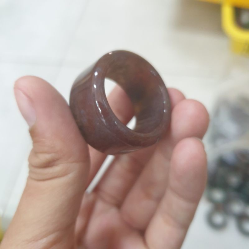 Chất liệu: đá canxedon Nhẫn có mẫu bản vuông, bản tròn và nhiều kích cỡ. Canxedon là một dạng ẩn tinh của silica, gồm rất nhiều hạt thach anh và moganit rất nhỏ mọc xen kẽ. Nếu đeo nhẫn ngón cái sẽ rất đẹp, thể hiện sự sang trọng quý phái