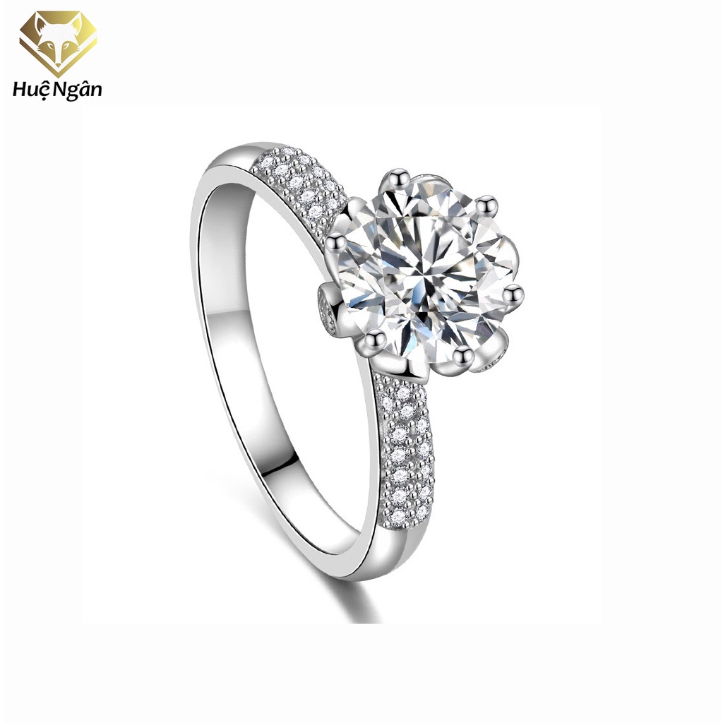 Nhẫn bạc Ý 925 Huệ Ngân - Ổ cao 6 chấu 8 Li vượng miện sang chảnh RR1761-1