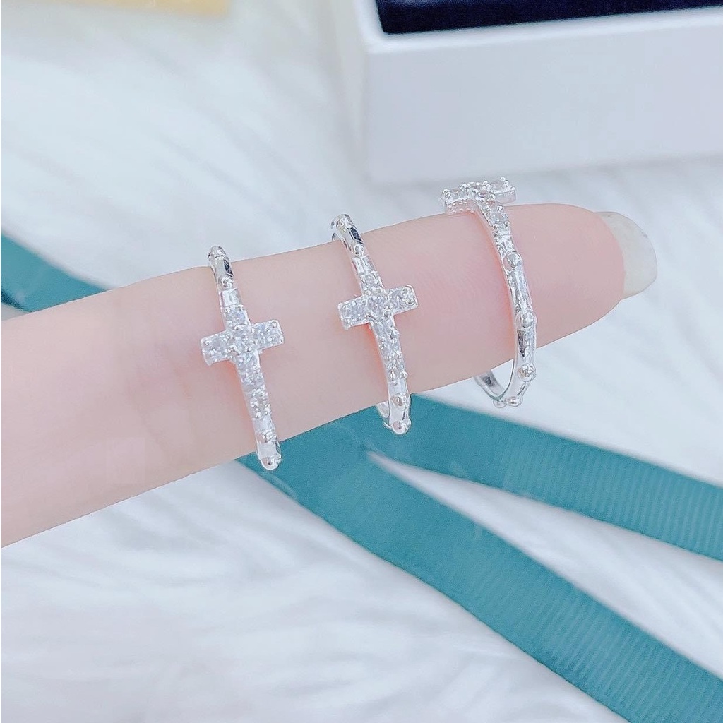 Nhẫn bạc nữ mặt thánh giá đính đá, chuẩn nhẫn bạc ta sang trọng nữ tính - Trang sức bạc Evasilver