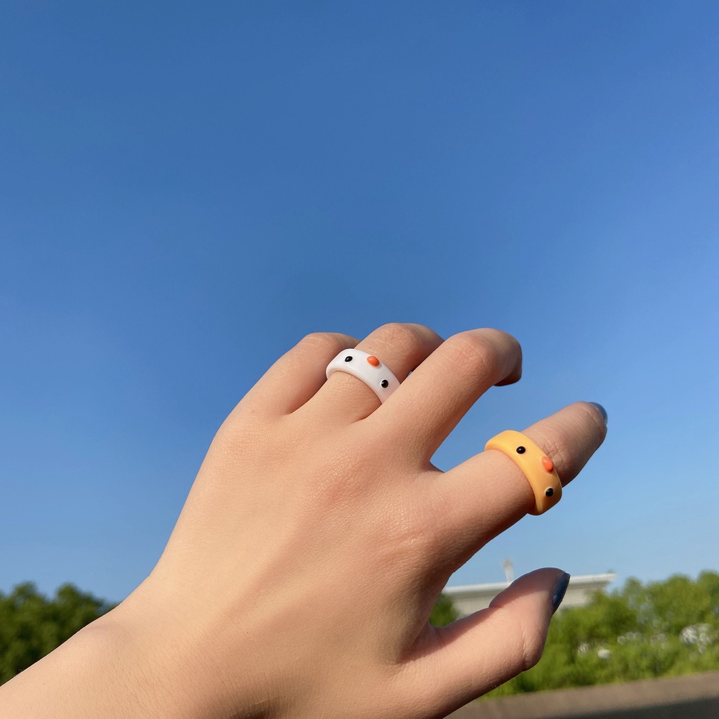Nhẫn resin acrylic hình học ếch/ gà con dễ thương trang sức thời trang ngộ nghĩnh