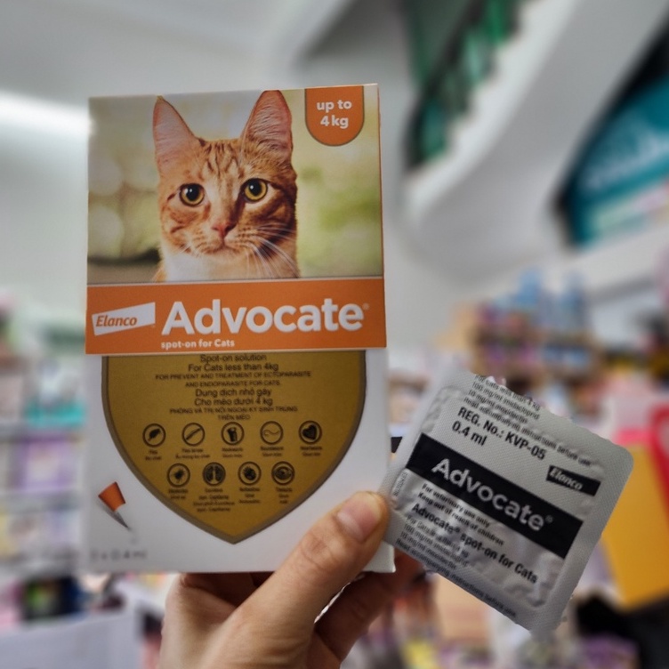 Advocate Nhỏ Gáy Ngăn Ngừa Nội Ngoại Ký Sinh Trùng Cho Mèo LƯU Ý: 1 MÈO CHỈ NÊN MUA 1 TUÝP. HỘP CÓ 3 TUÝP Cách dùng B1: Lấy tuýp Advocate trong hộp ra, Sau đó, quay ngược nắp tuýp Advocate lại, vặn vào đầu tuýp Advocate để đâm thủng phần nhựa ép trên miệng tuýp B2: Vạch phần lông giữa hai xương bả vai cho đến khi nhìn thấy da và bóp nhẹ nhiều lần cho dung dịch ra hết 1 mèo nhỏ hết 1 tuýp Xuất xứ Đức Phân phối: công ty TNHH ELANCO VIỆT NAM
