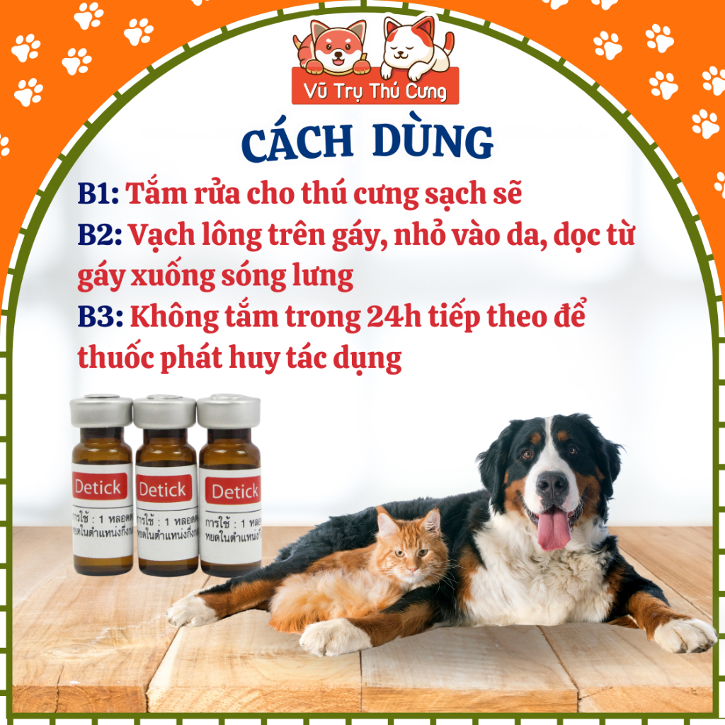 Nhỏ gáy ngừa, trị ve rận cho Chó Mèo Detick Thái Lan