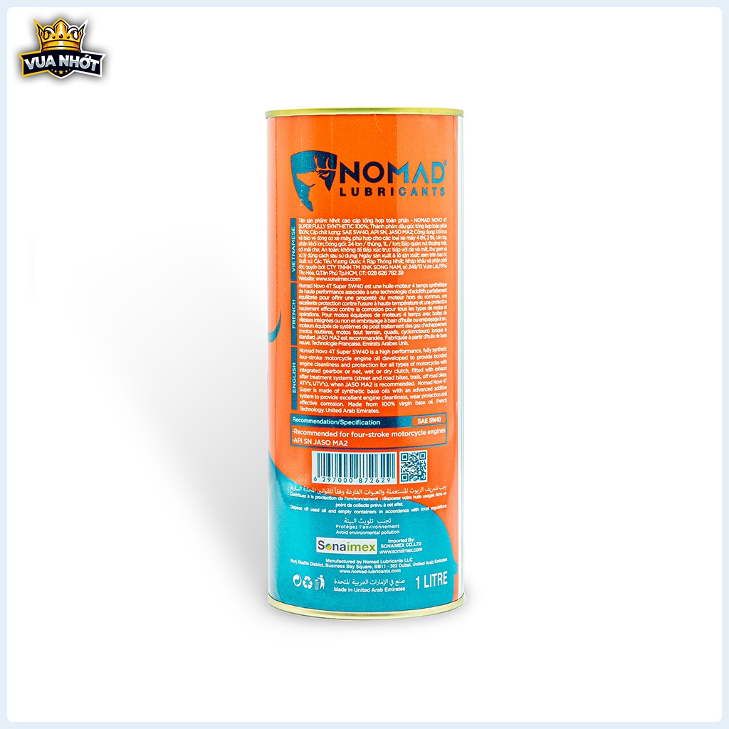 Nhớt ex 150, 135, 155 - Nhớt Exciter NOMAD 5W40 SN MA2 Fully Lon 1 Lít - 1.1 Lít