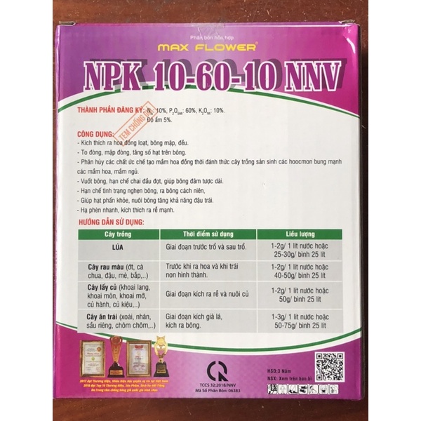 NPK 10-60-10 tạo mầm hoa,bung cựa gà,tăng đậu trái