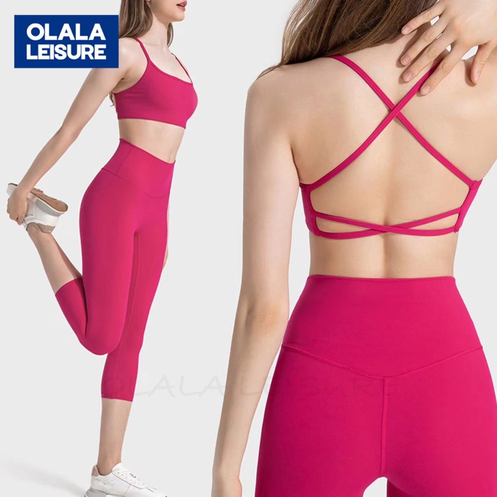 Olala Bộ Đồ Tập Yoga Dây Mảnh Khoét Rỗng Lưng Thấp + Quần Lót Lưng Cao Không Xuyên Biên Giới Màu Nude Dáng Ôm Tập Yoga Thể Thao
