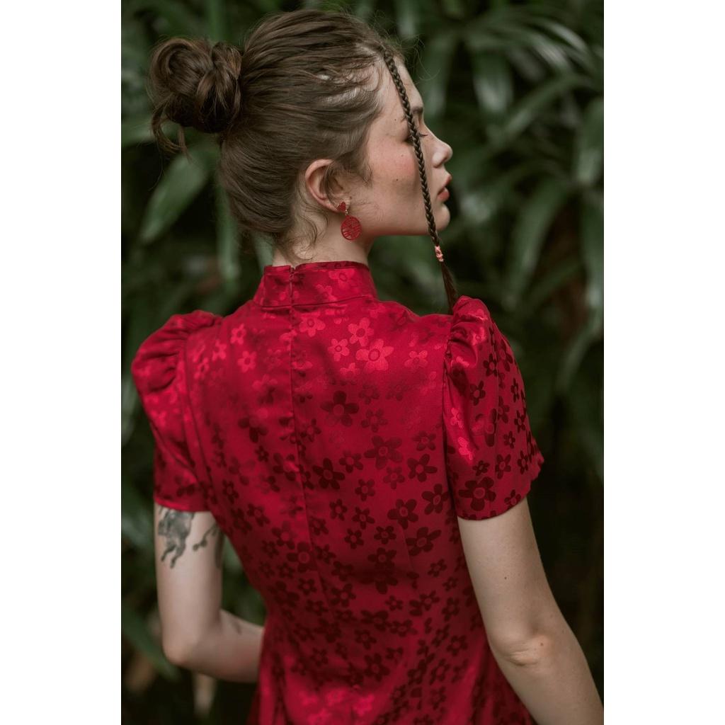 OLALASTUDIO Đầm mini gấm hoa ẩn cổ tàu cách tân